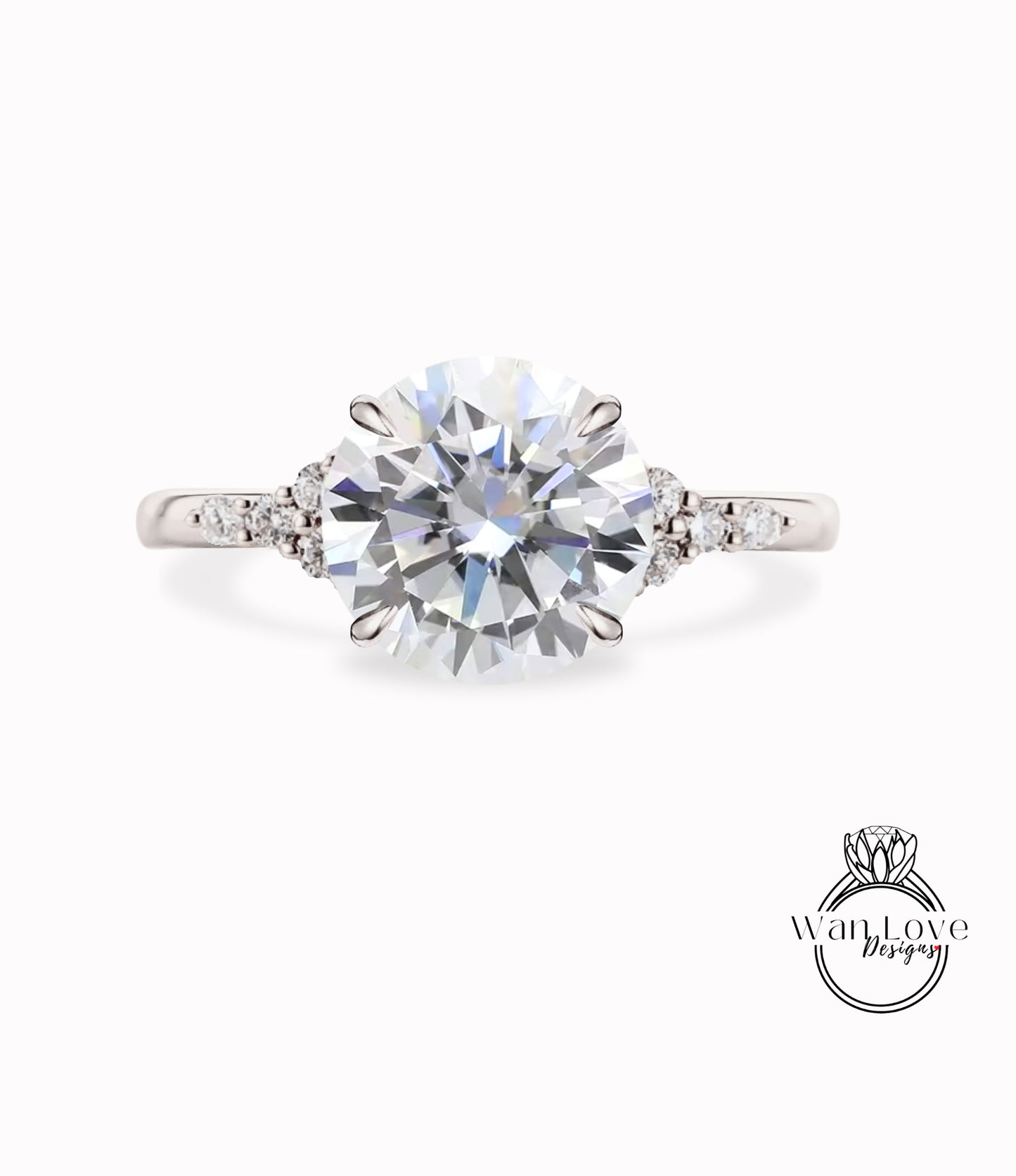 Moissanite Diamond Cluster Round Engagement Ring, Moissanite diamond art deco ring minimalist tapered Bridal Anniversary promise wedding ring