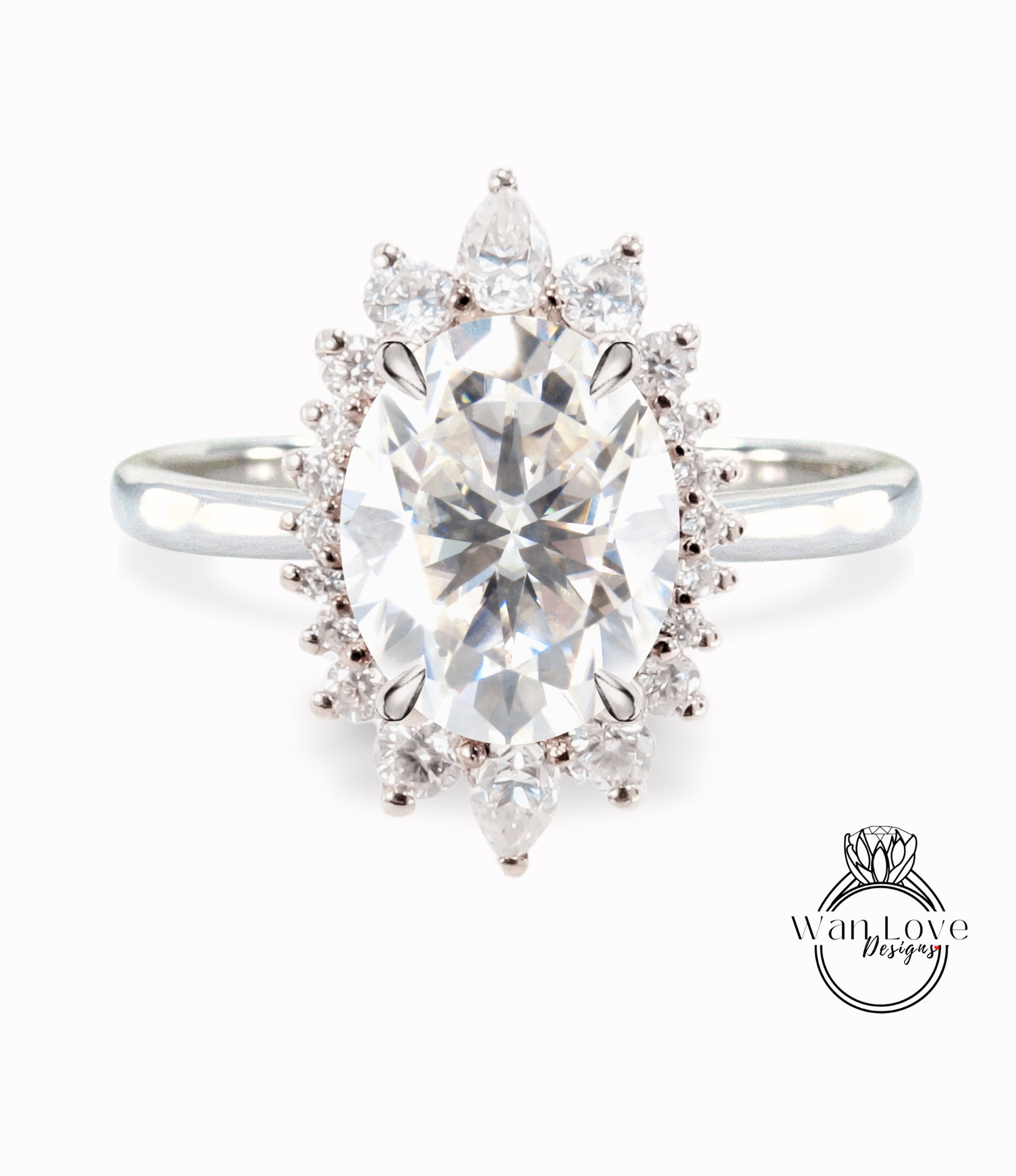 Moissanite & Diamond Oval Cluster Halo Engagement Ring, Rose Gold Bridal Wedding Ring, Anniversary Gift