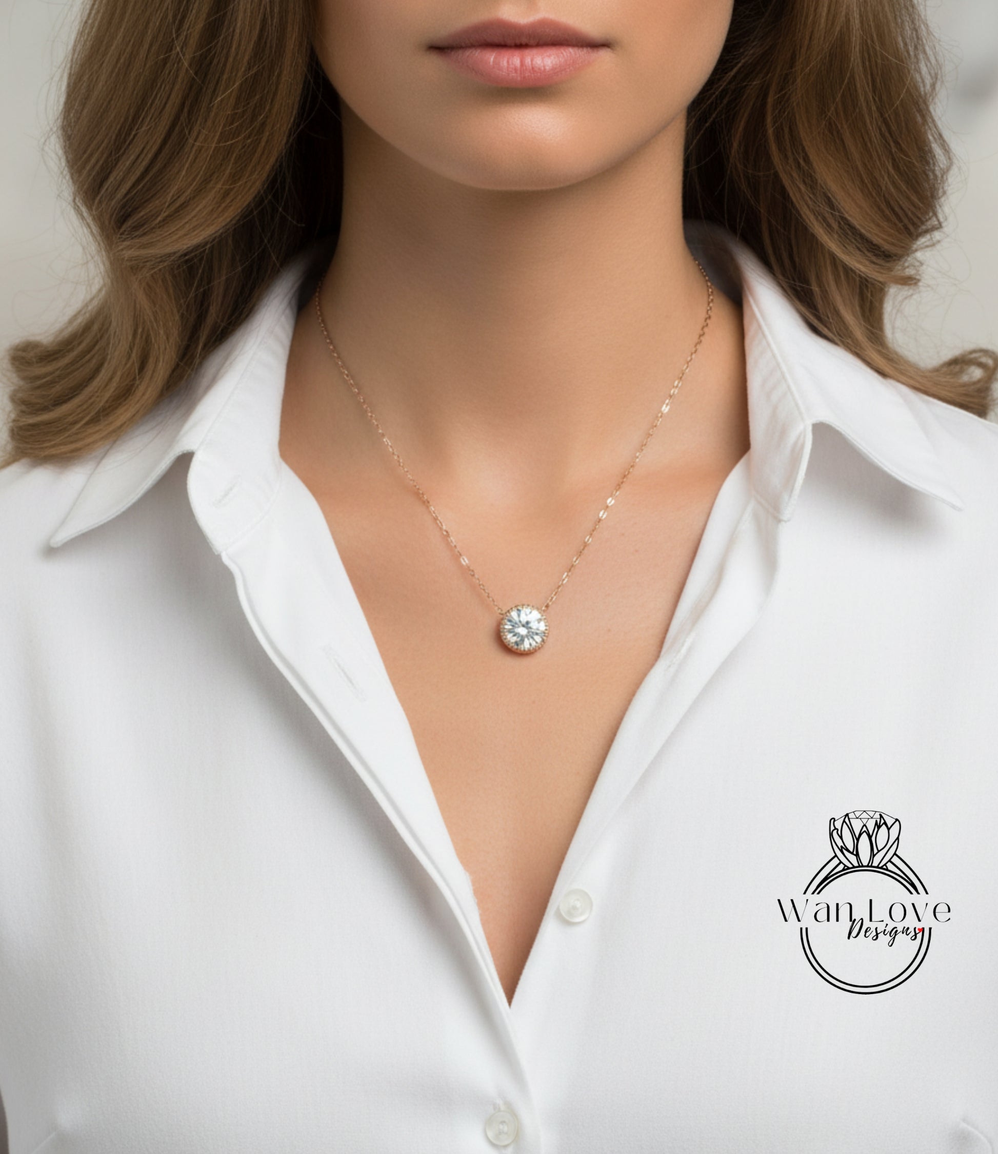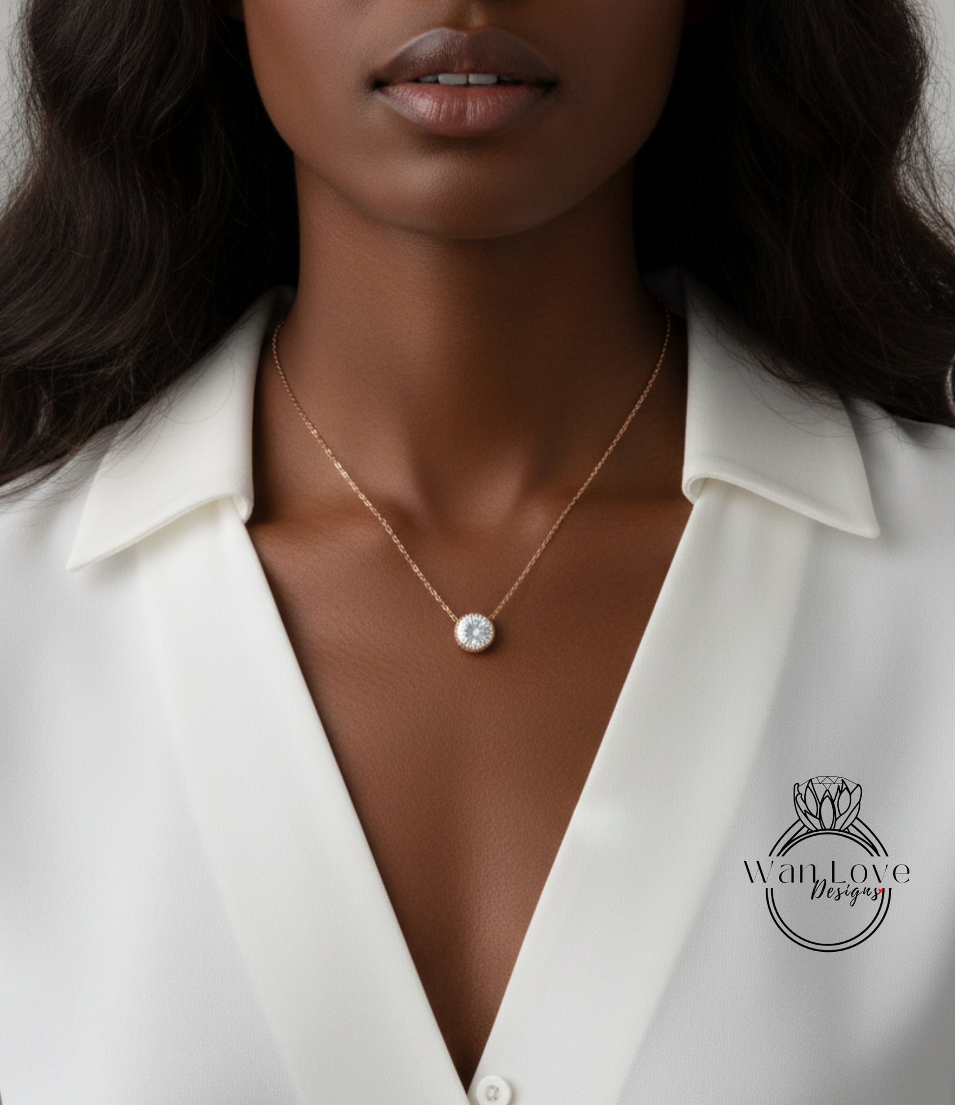 Moissanite Milgrain Bezel Round cut Necklace Solitaire Charm Thin Chain, 2ct, 8mm, Custom, Wedding,Aniversary Gift, Commitment-Faster Ship.