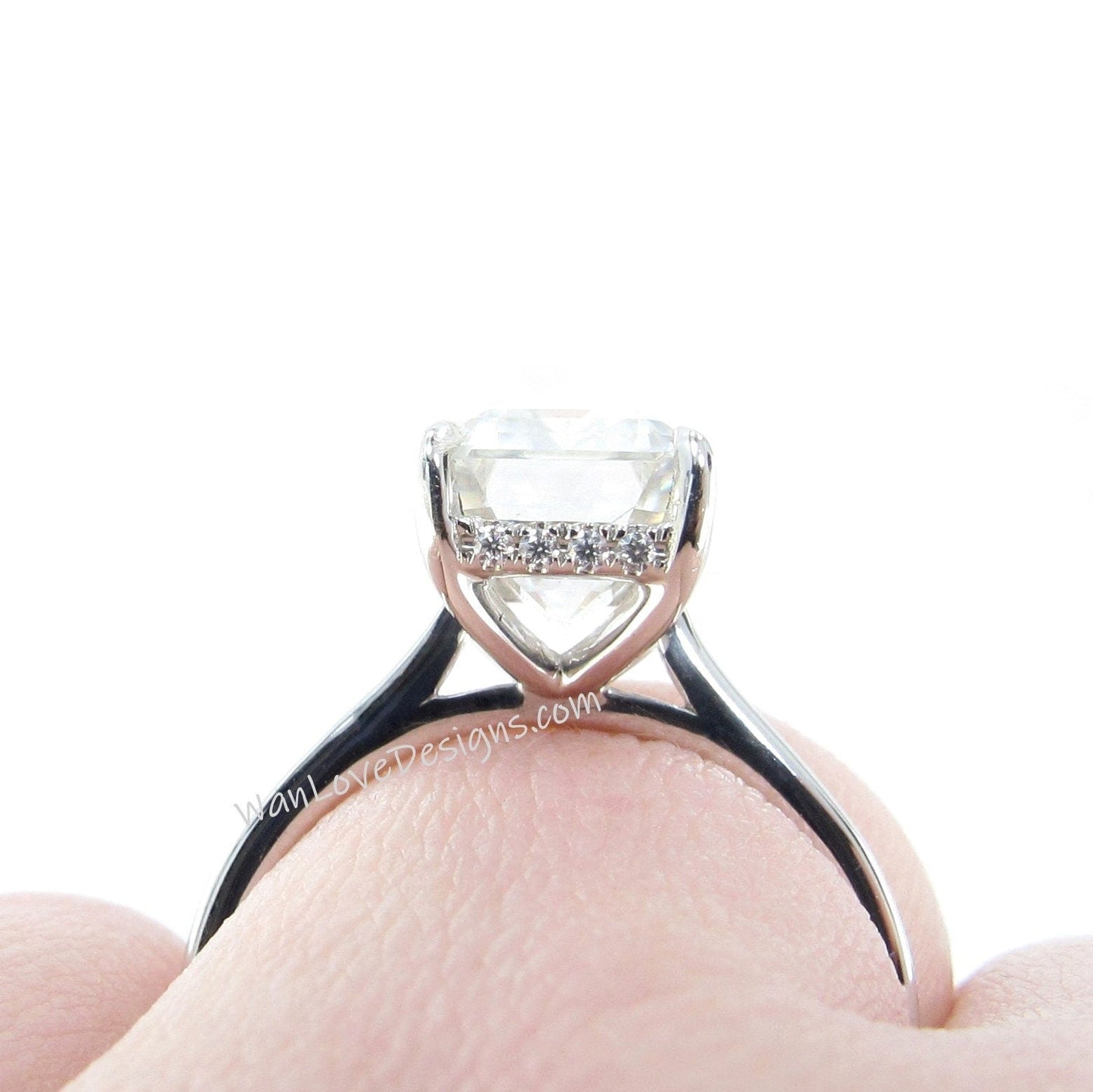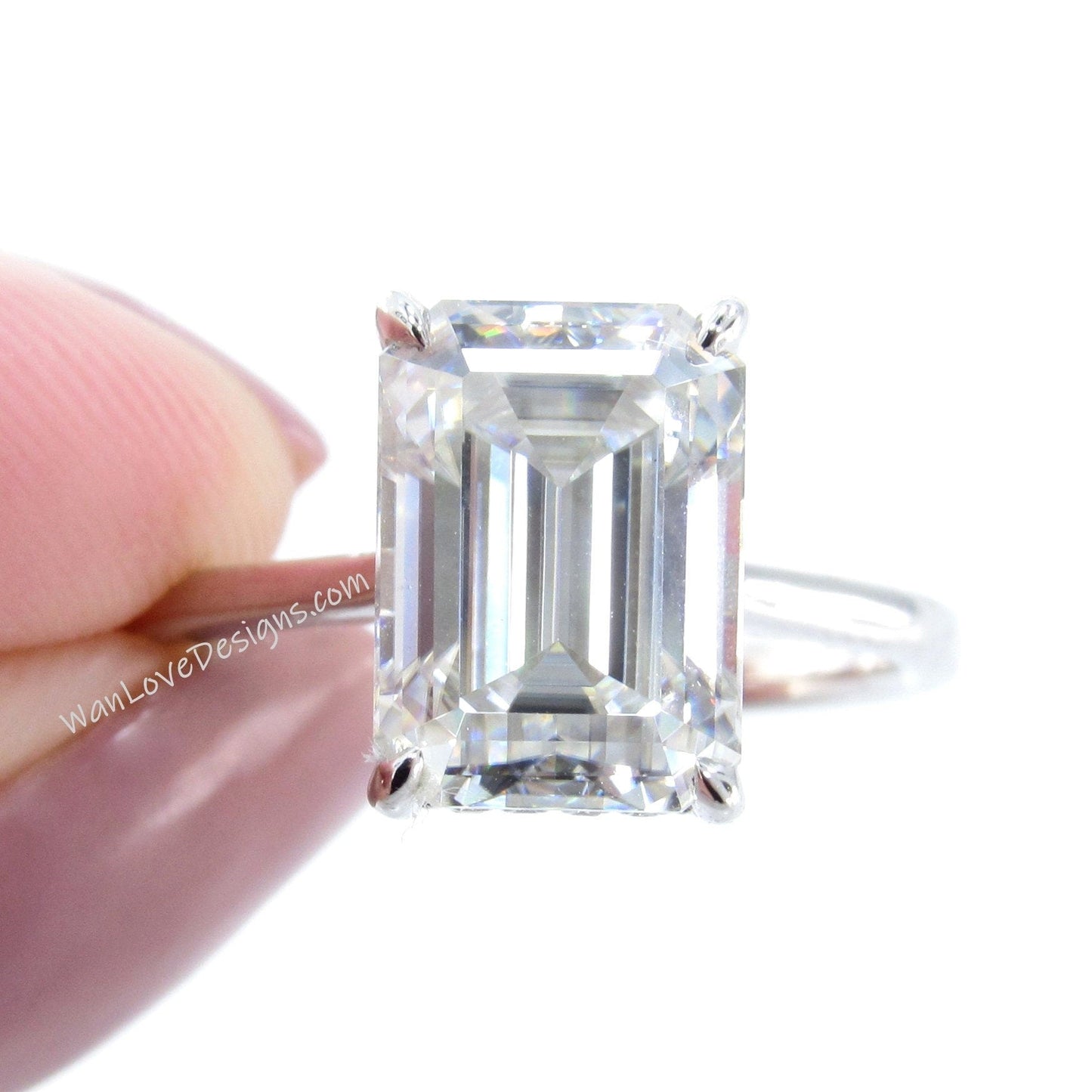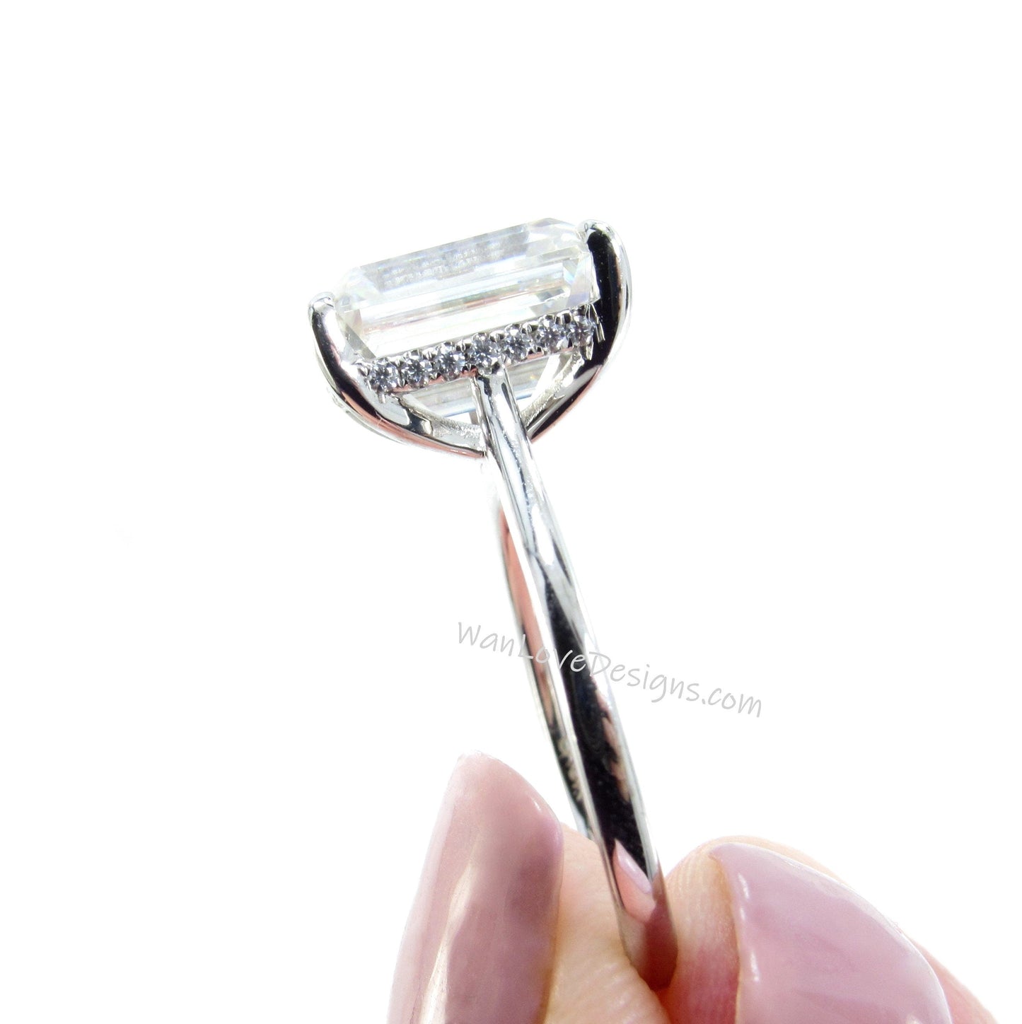 Moissanite Side Halo Emerald Engagement Ring, 4ct, 10.5x7.5mm, Custom, White Gold, Wedding, Anniversary Gift, Ready to Ship