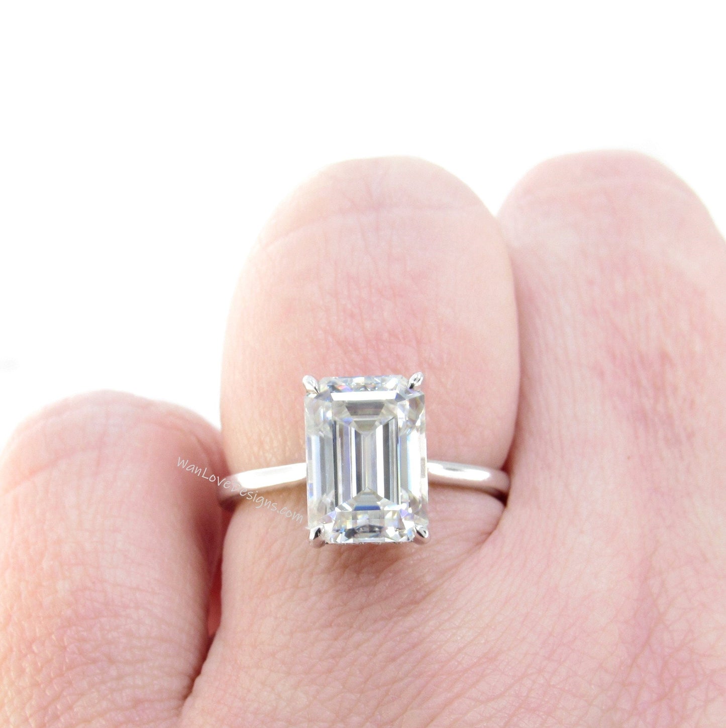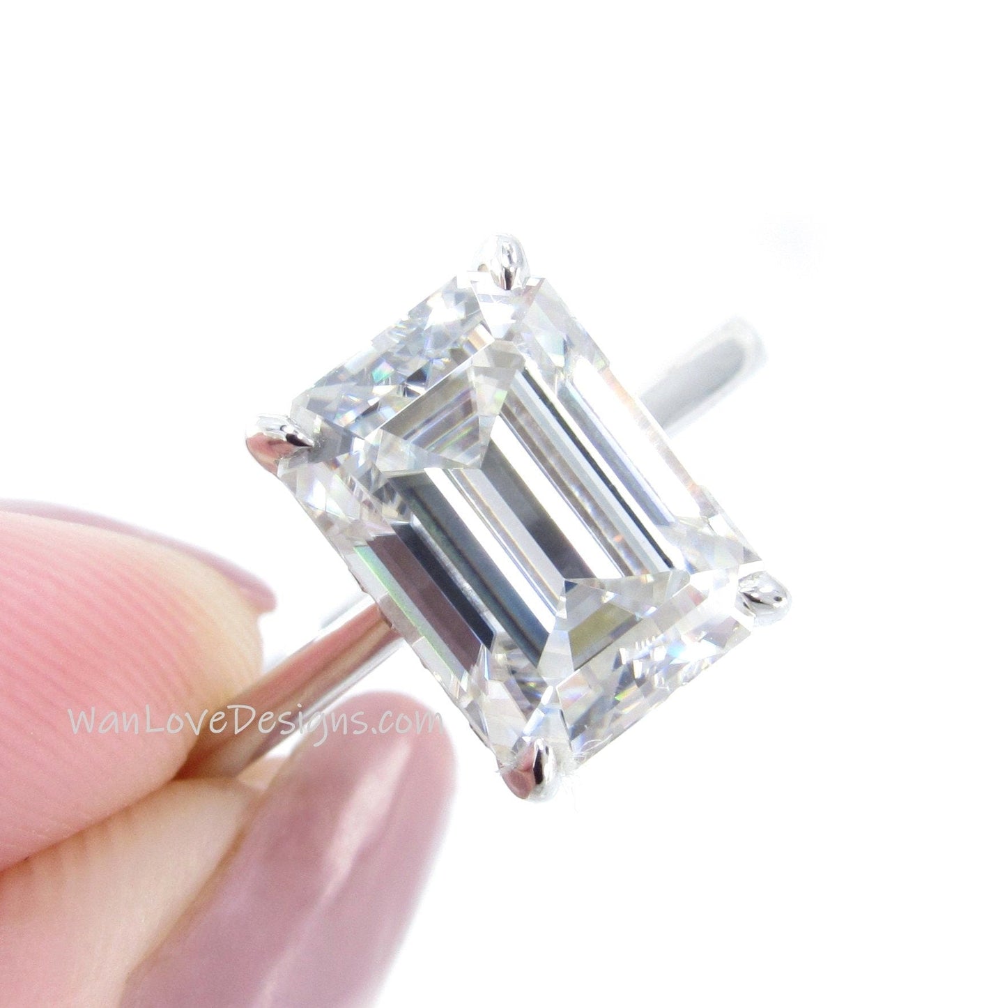 Moissanite Side Halo Emerald Engagement Ring, 4ct, 10.5x7.5mm, Custom, White Gold, Wedding, Anniversary Gift, Ready to Ship.