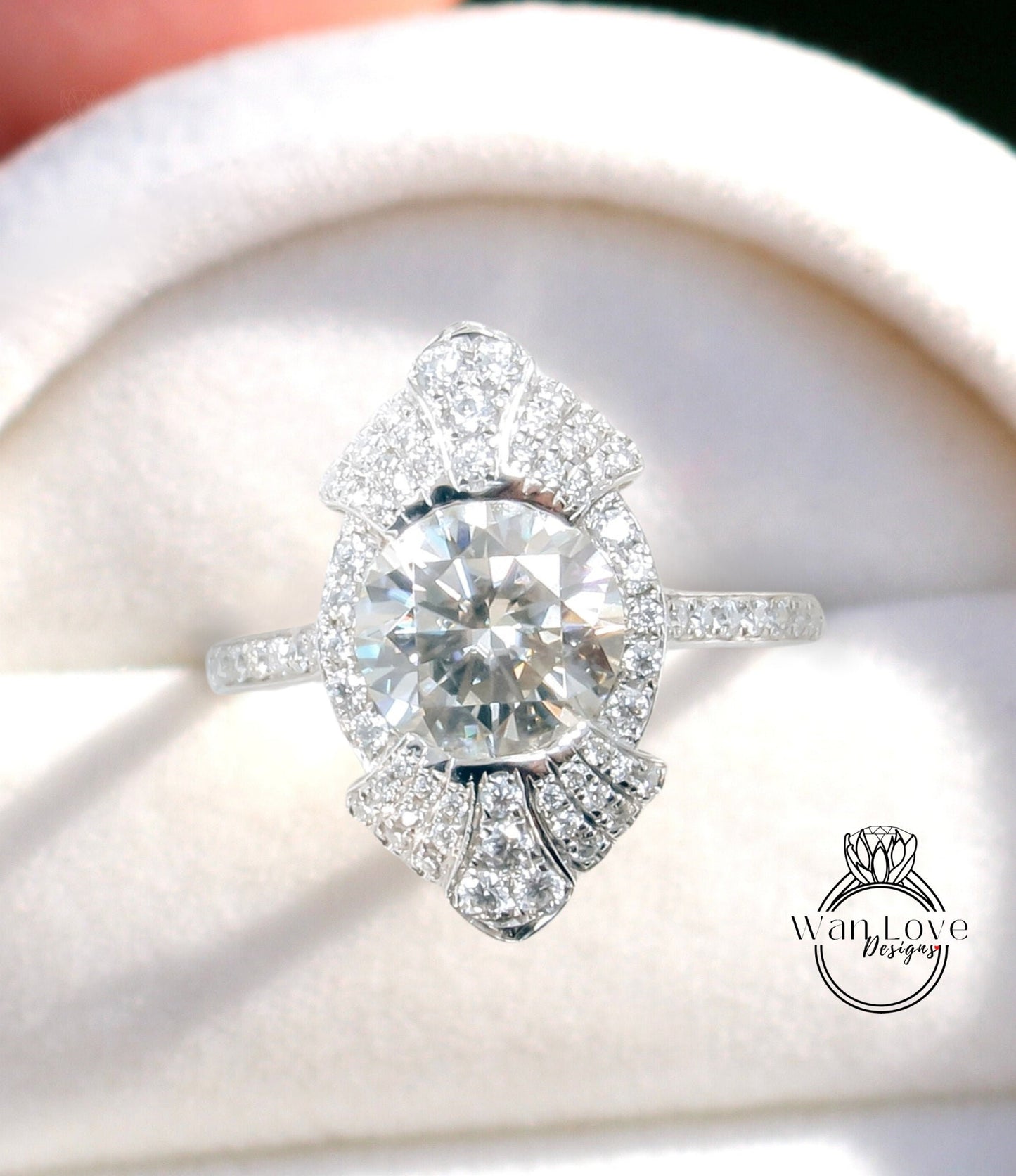 Moissanite Vintage Art Deco Bezel Antique Engagement Ring Round cut 2ct White Gold Wedding Anniversary Gift-Ready to Ship