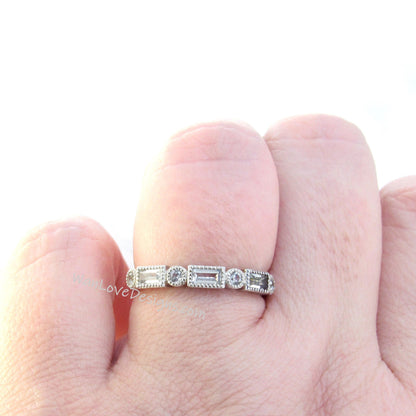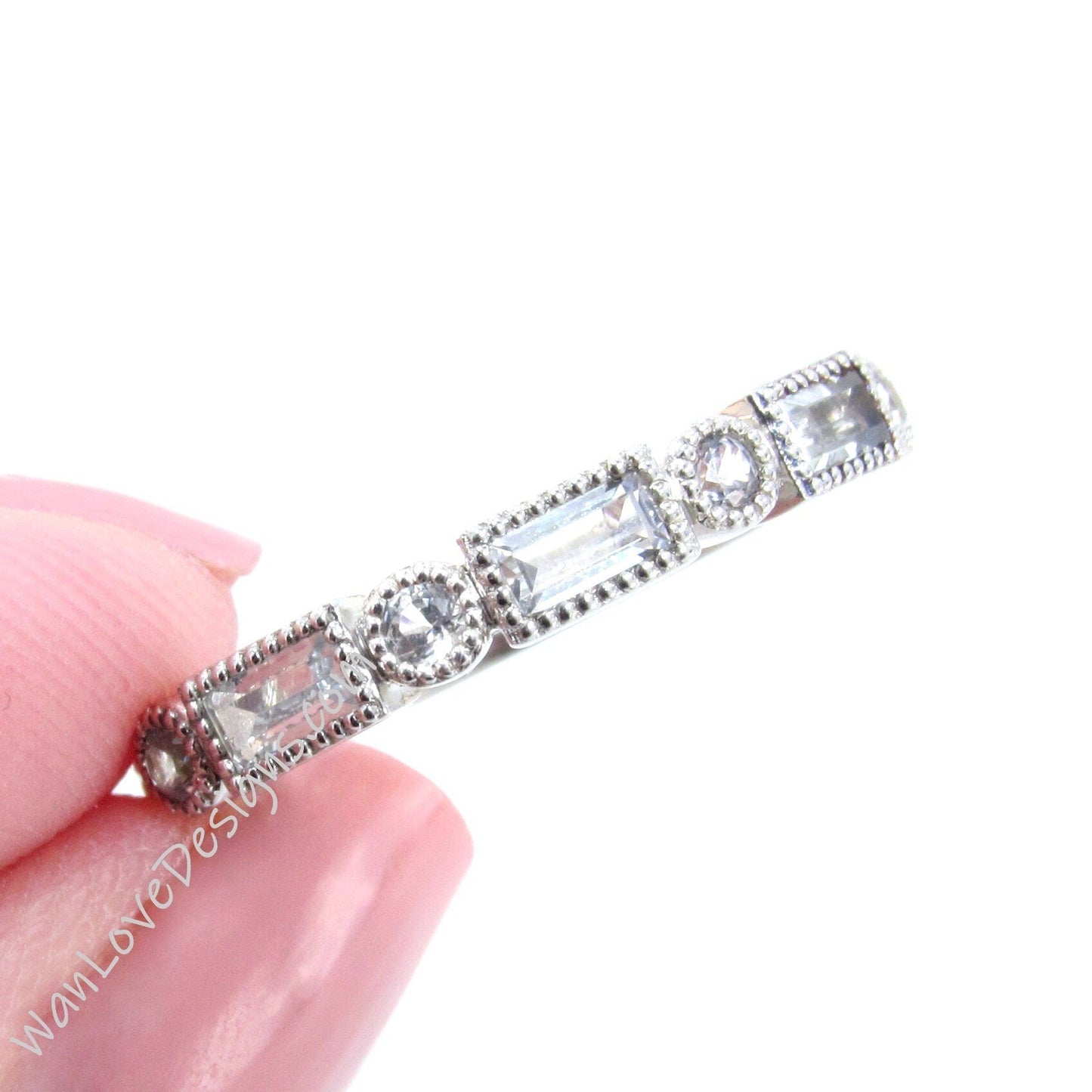 Diamond Baguette Halfway Eternity Ring • White Sapphire 3/4 Eternity Ring • Engagement Ring • Anniversary Ring • Birthstone Mothers Day Gift