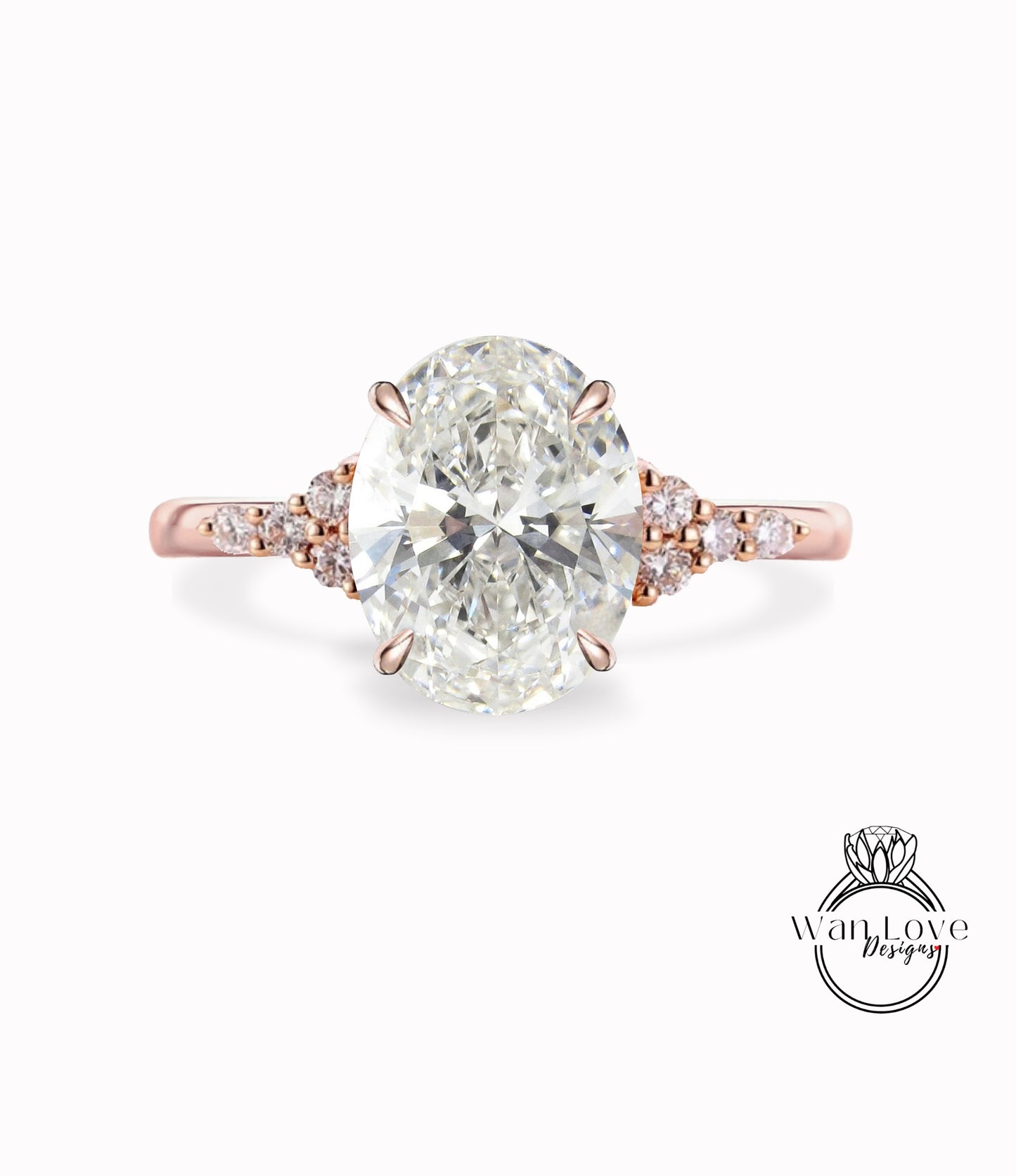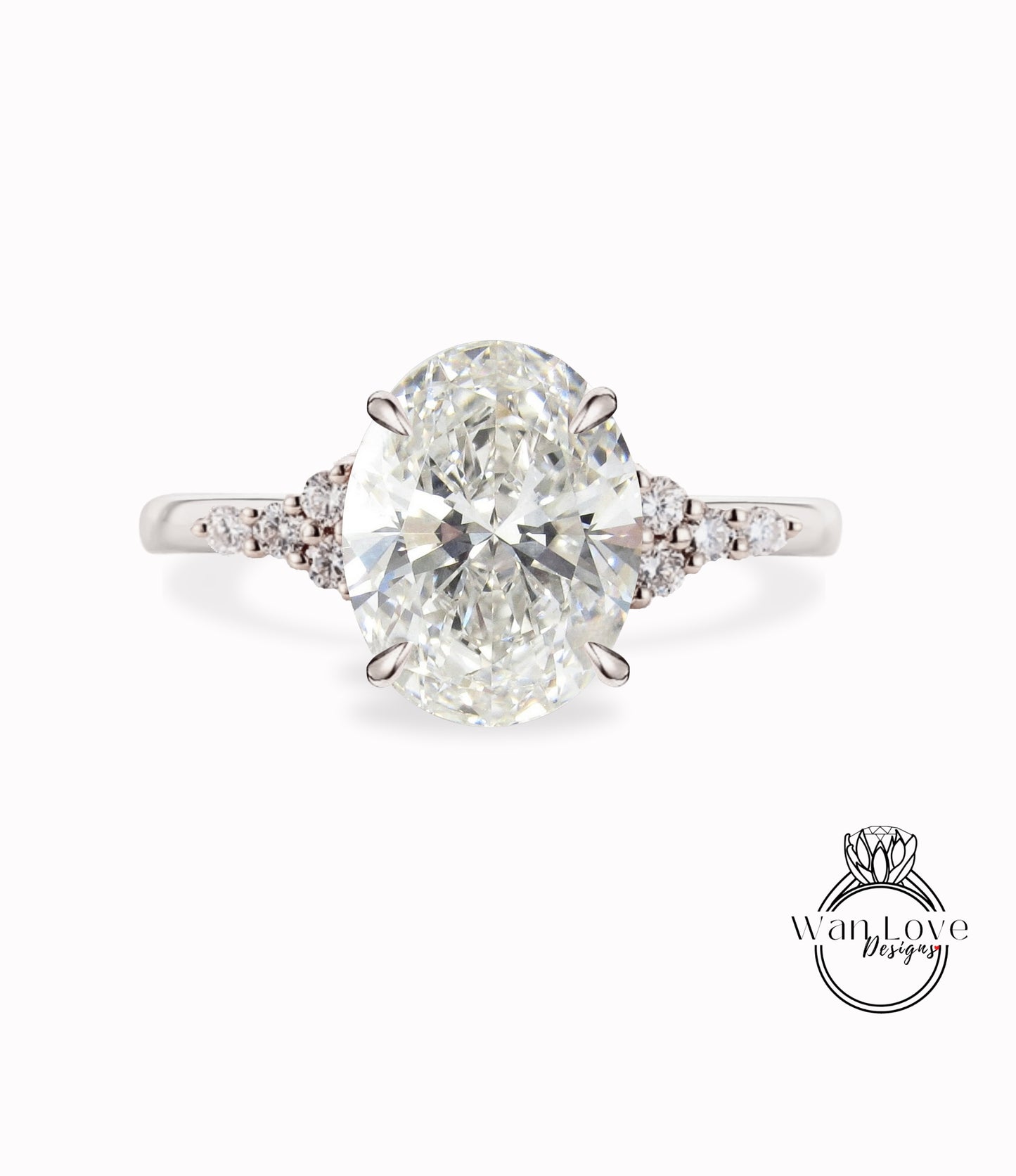 Oval cut Diamond engagement ring vintage Unique Round cut Lab diamond Cluster gold engagement ring women Bridal gift CVD HPHT Lab