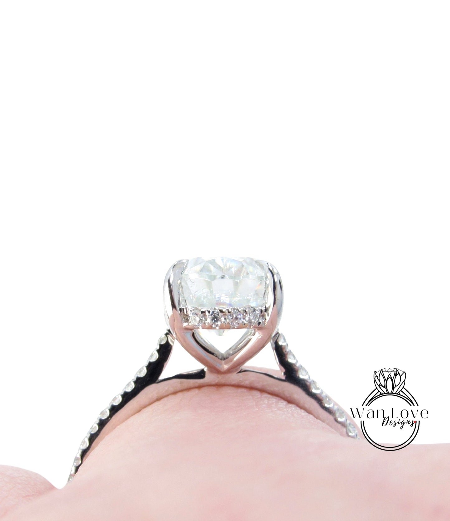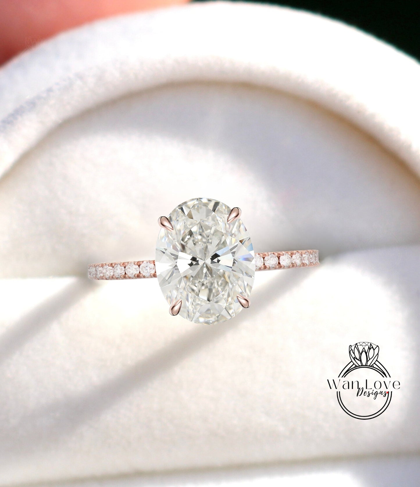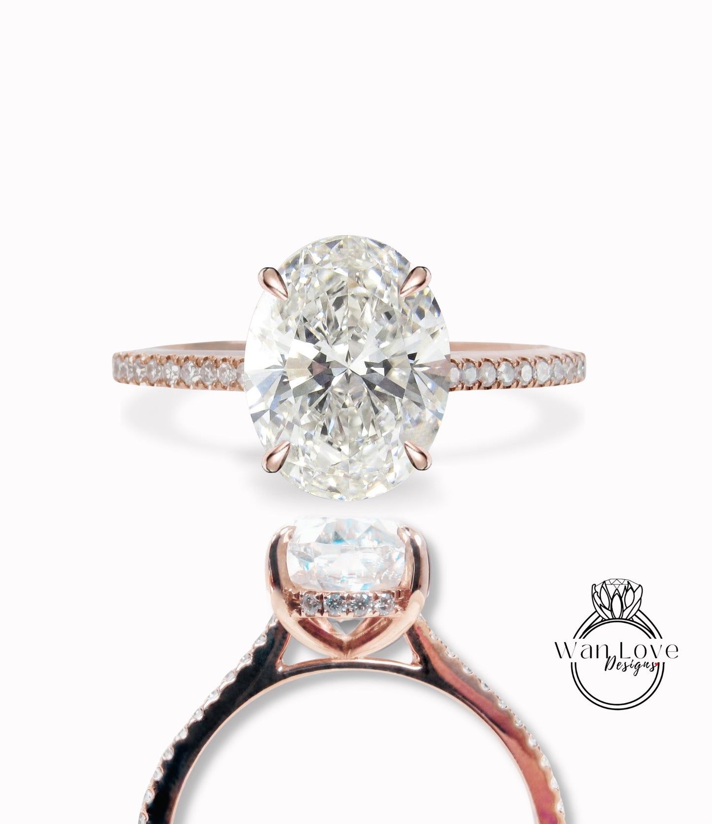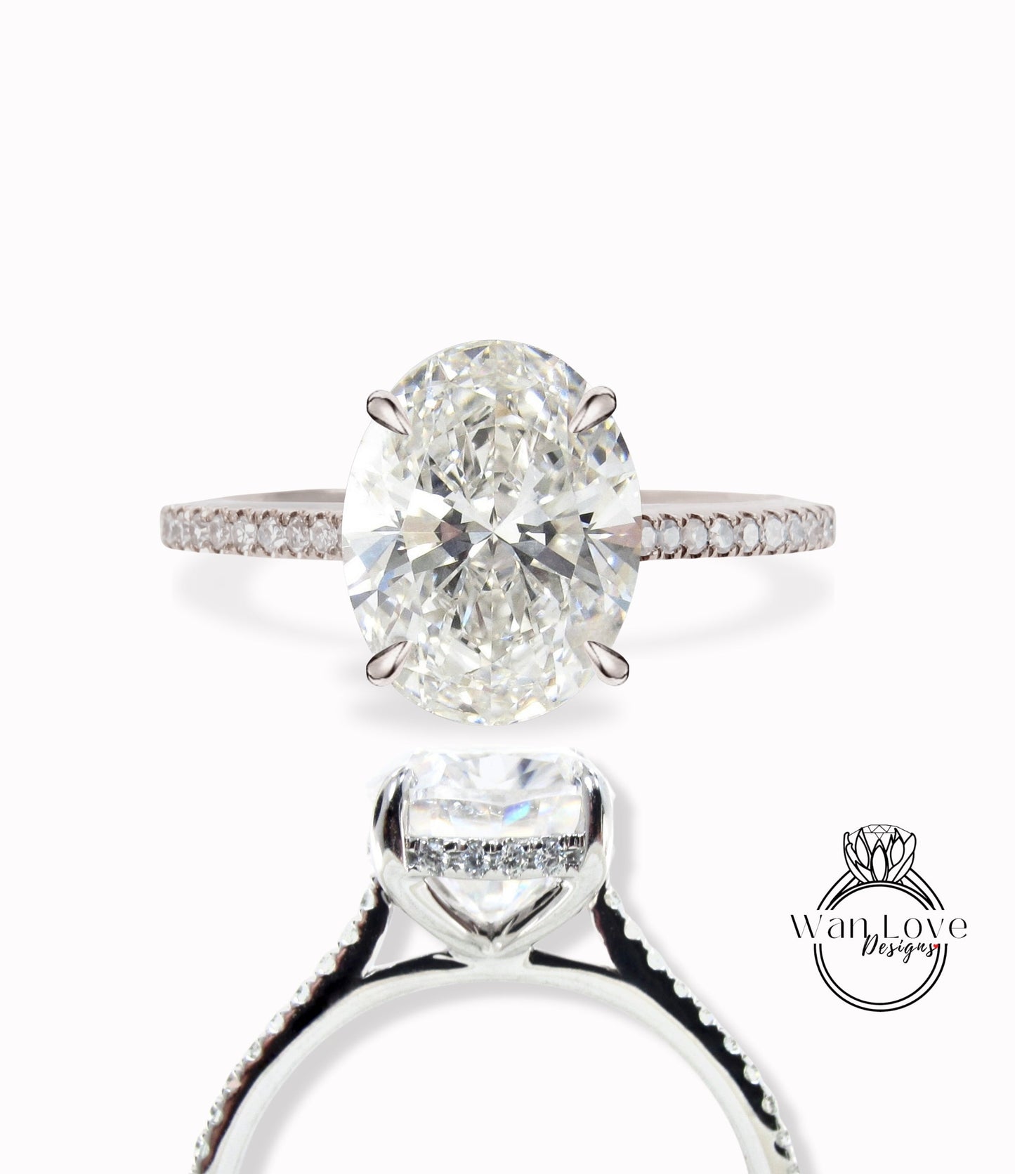 Oval Diamond Hidden Side Halo Cut 1/2 Half Eternity Engagement Ring, Oval Lab Diamond Engagement Ring, Certified Diamond Ring, Solid 14k Engagement Ring