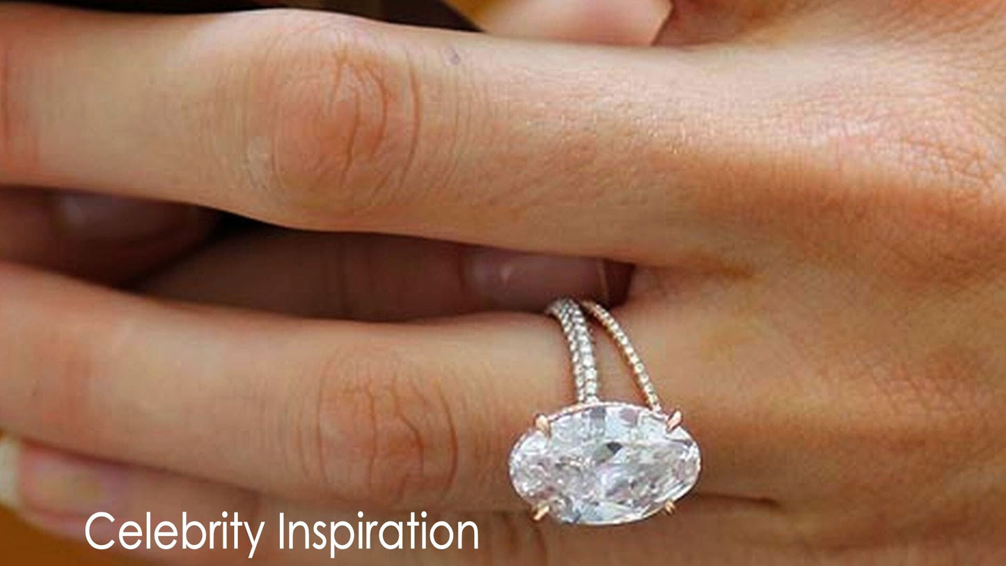 Oval White Sapphire Engagement Ring, 9 CT Oval Wedding Ring, Hidden Halo Ring, Ring Set Women, Celebrity Cathedral Ring, Anniversary, Ready.
