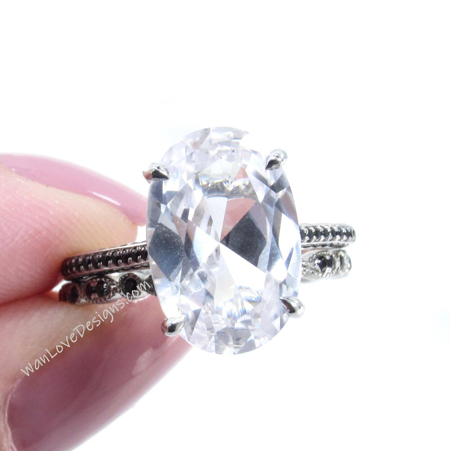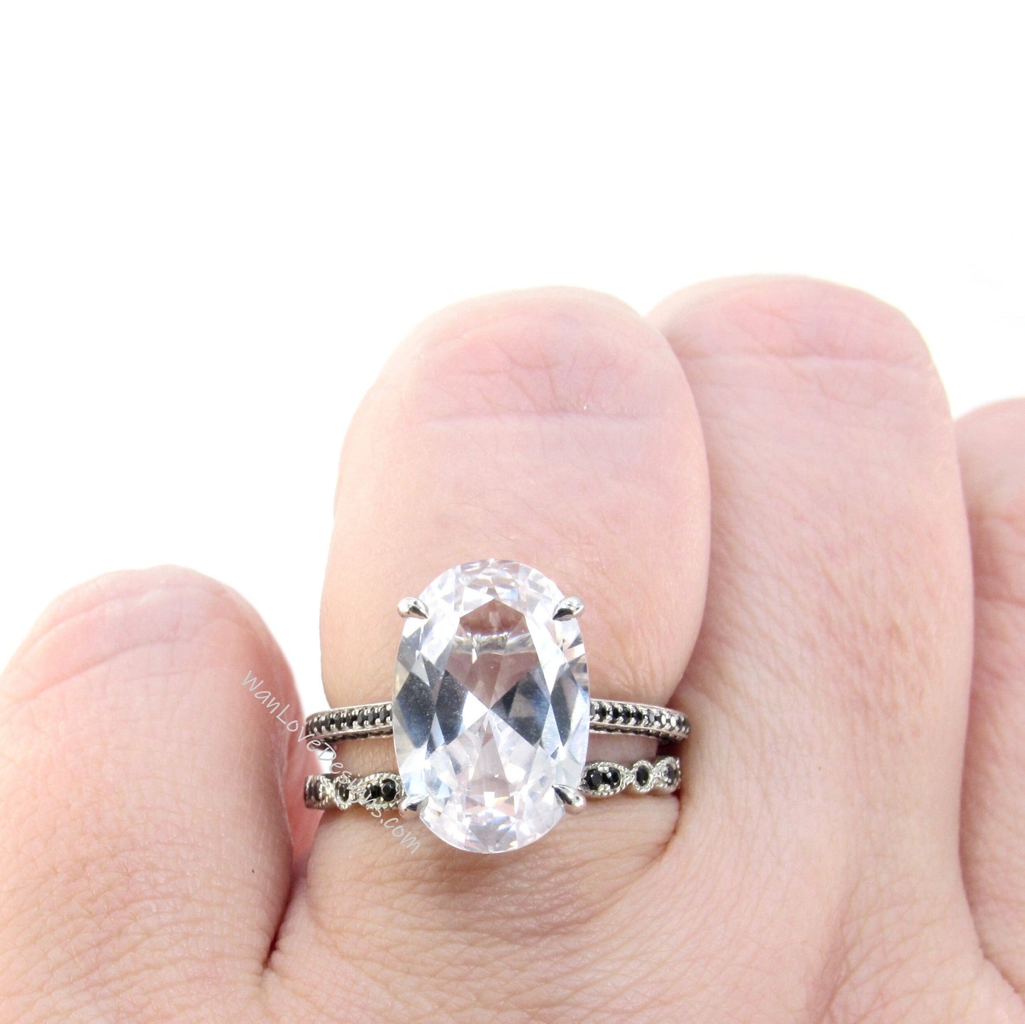 Oval White Sapphire Engagement Ring, 9 CT Oval Wedding Ring, Hidden Halo Ring, Ring Set Women, Celebrity Cathedral Ring, Anniversary, Ready