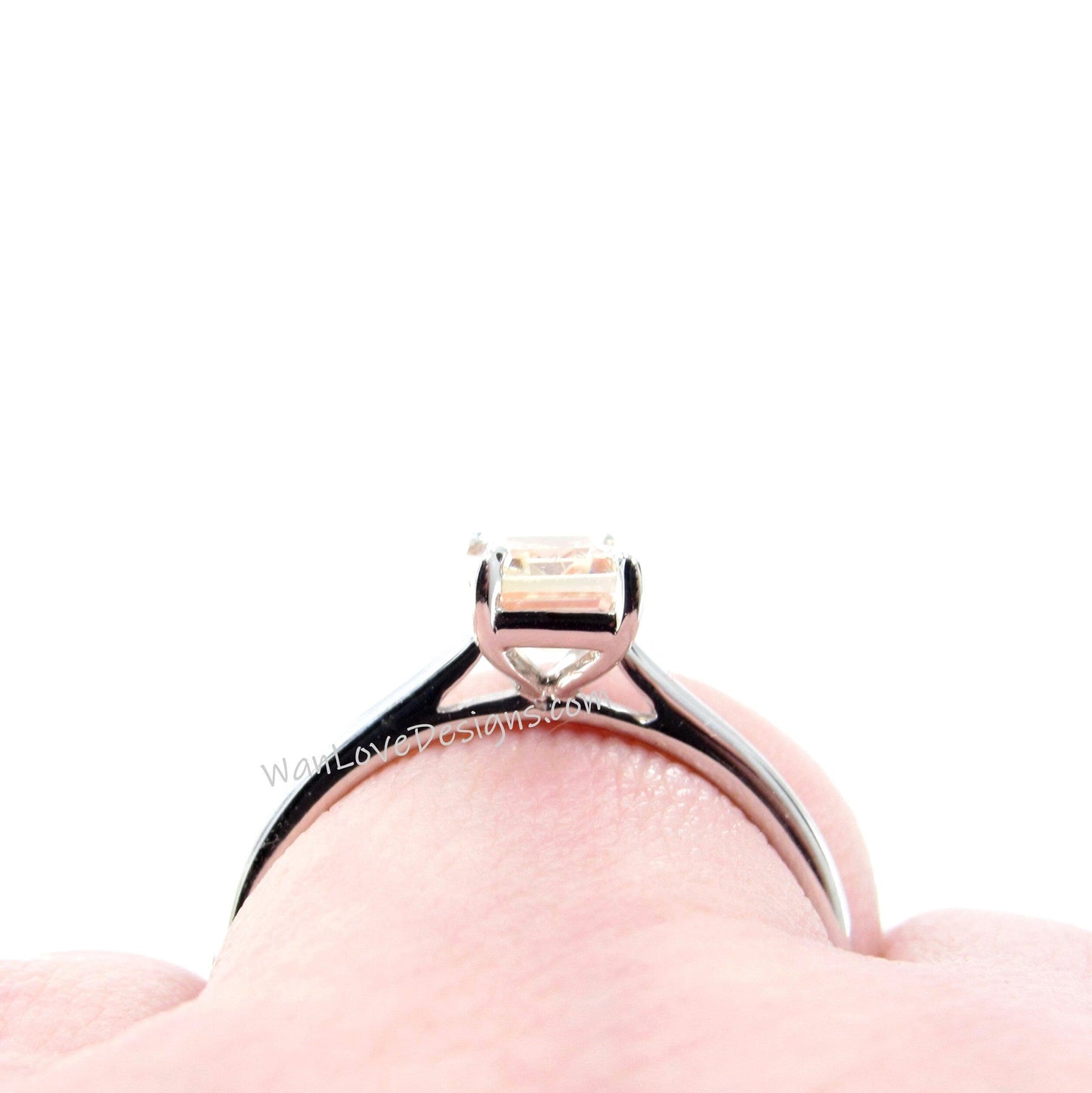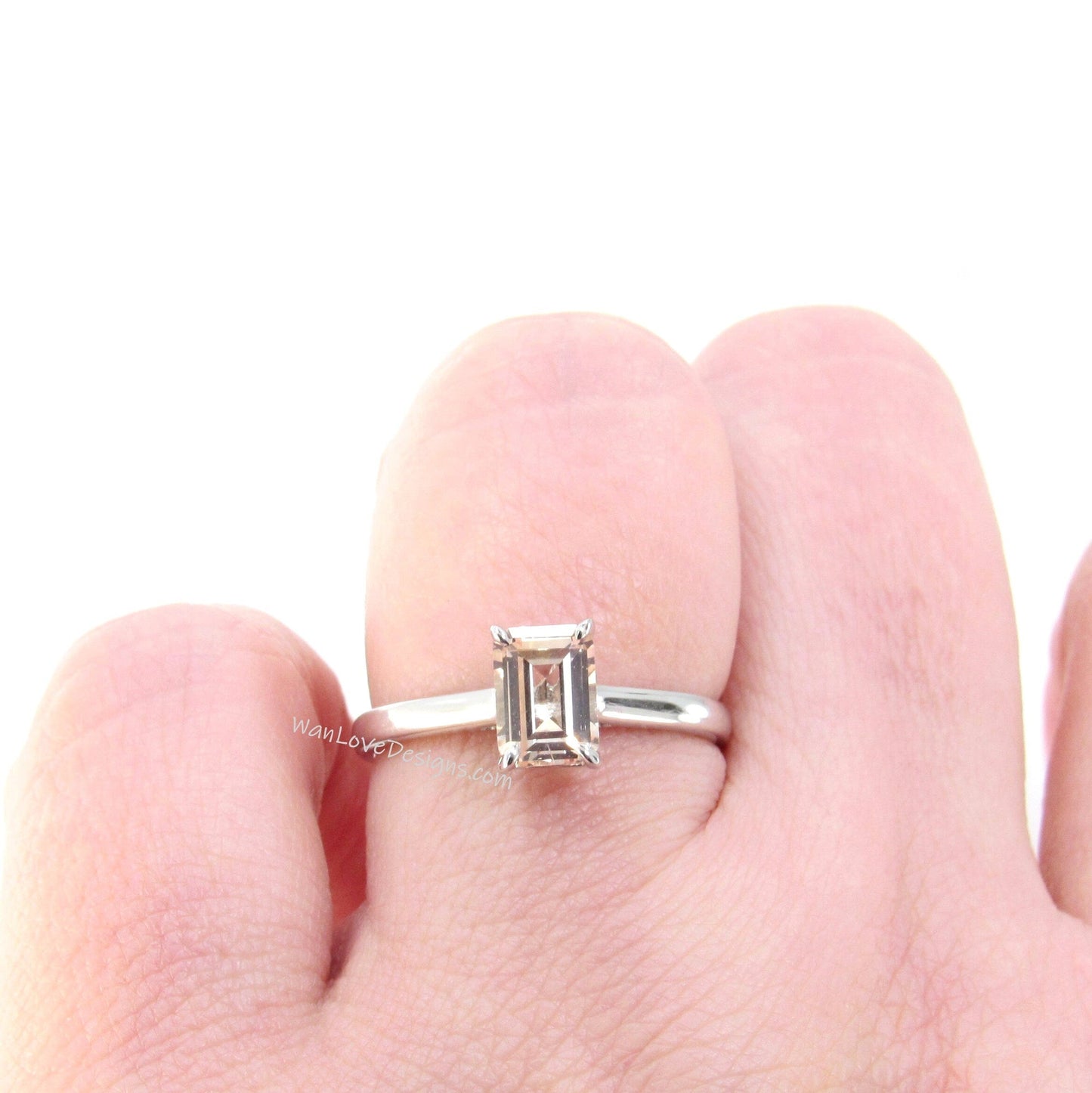 Peach Champagne Sapphire Emerald cut Solitaire Engagement Ring 1ct 7x5mm White Gold Wedding promise ring Anniversary Gift, Ready to Ship