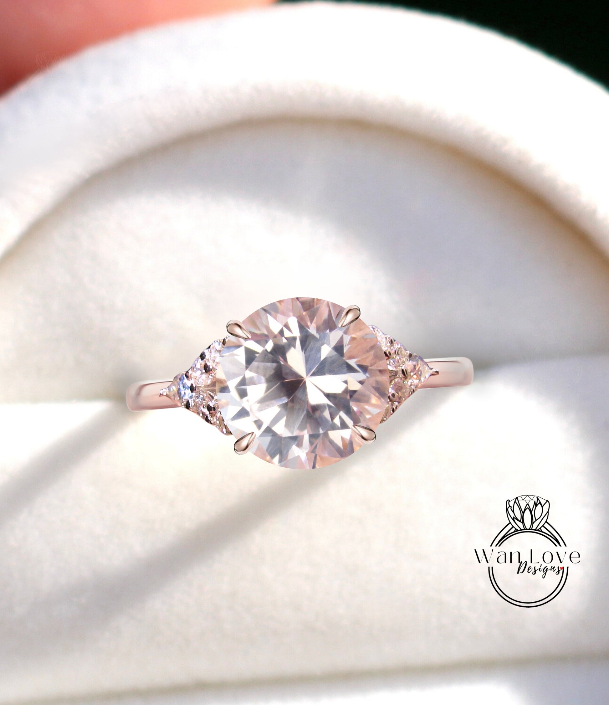 Peach Sapphire & Diamond Round Claw prong Pear split shank Engagement Ring Art Deco Vintage 14k 18k White Rose Gold Wedding Anniversary Gift
