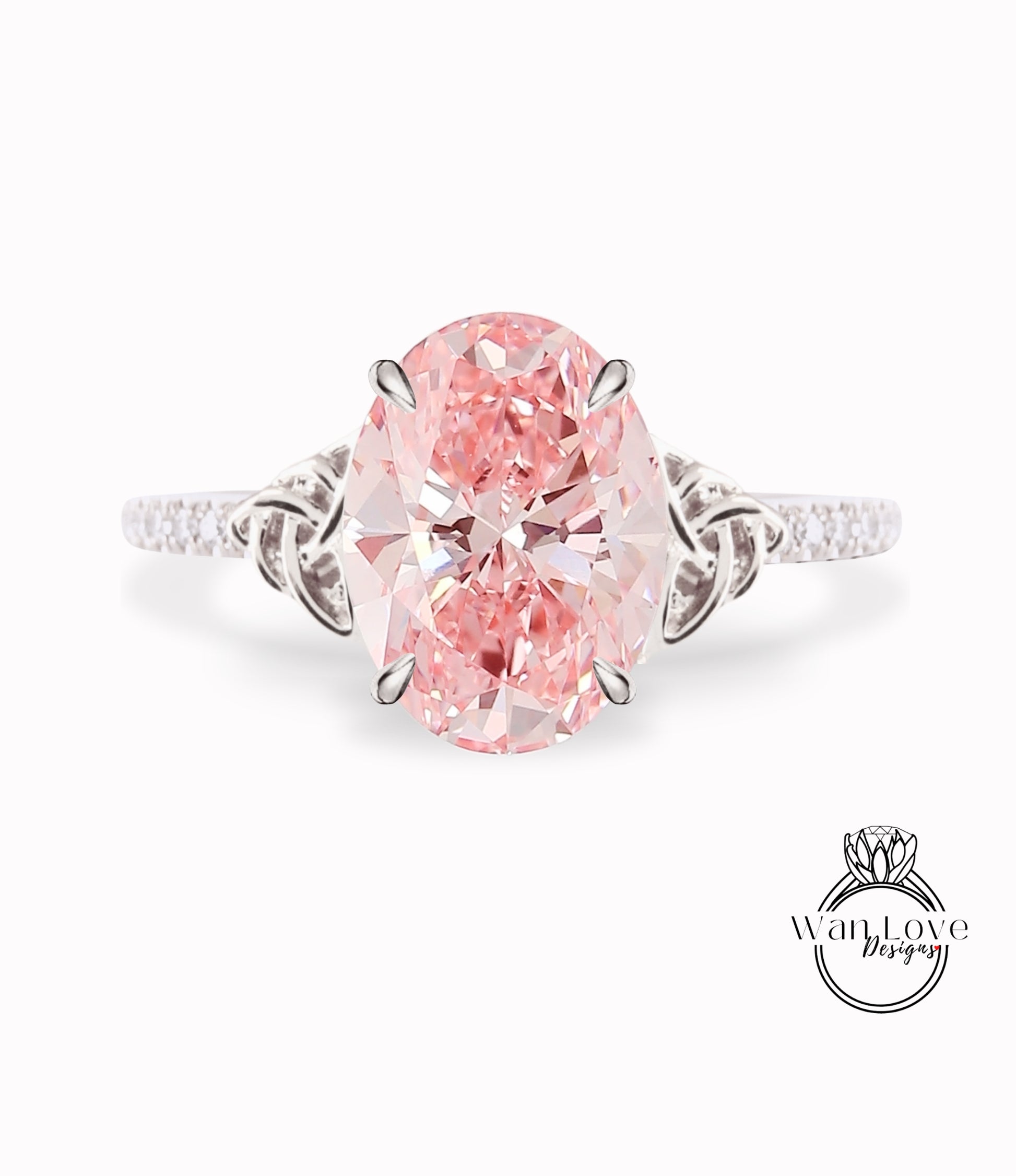 Pink Diamond Celtic Knot Oval Engagement Ring, Custom, Wedding, Double,14k 18k White Yellow Rose Gold,Platinum, Anniversary Gift