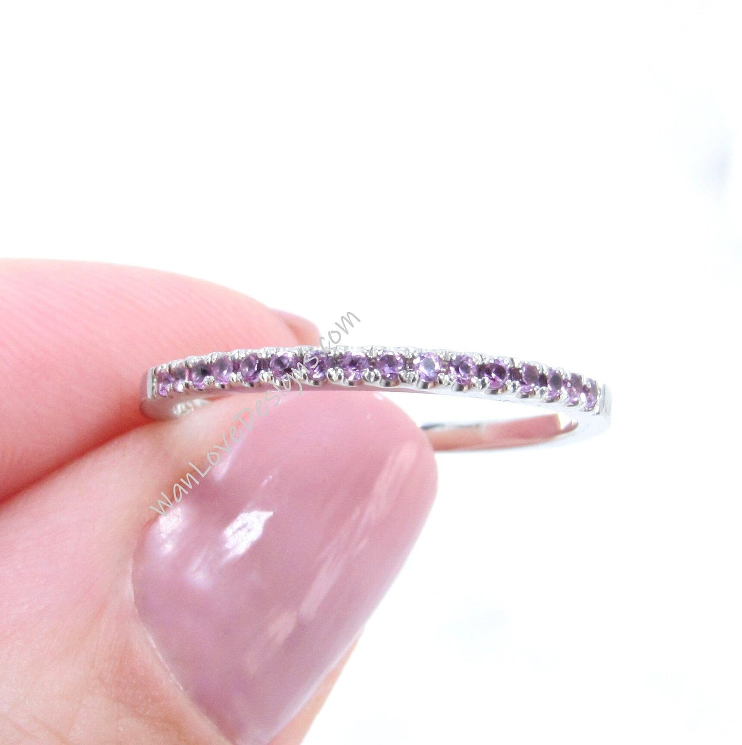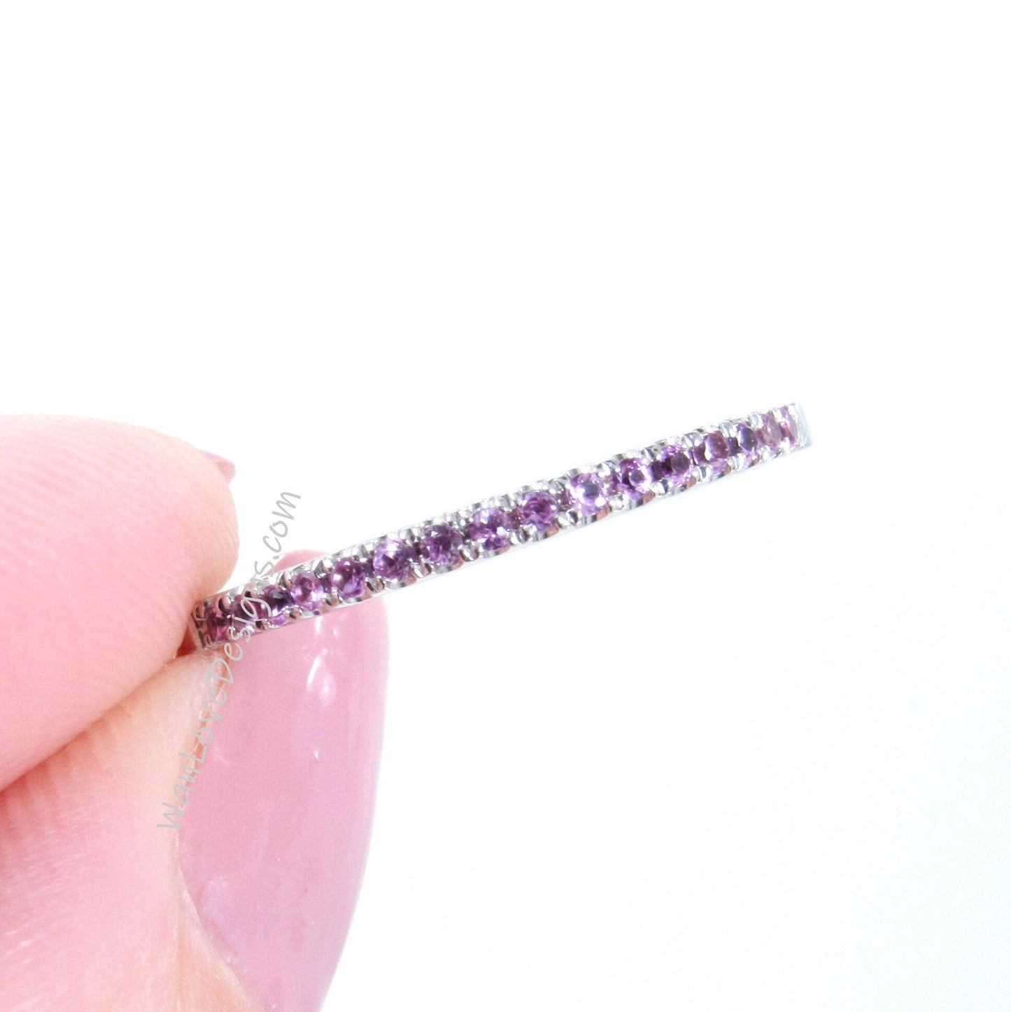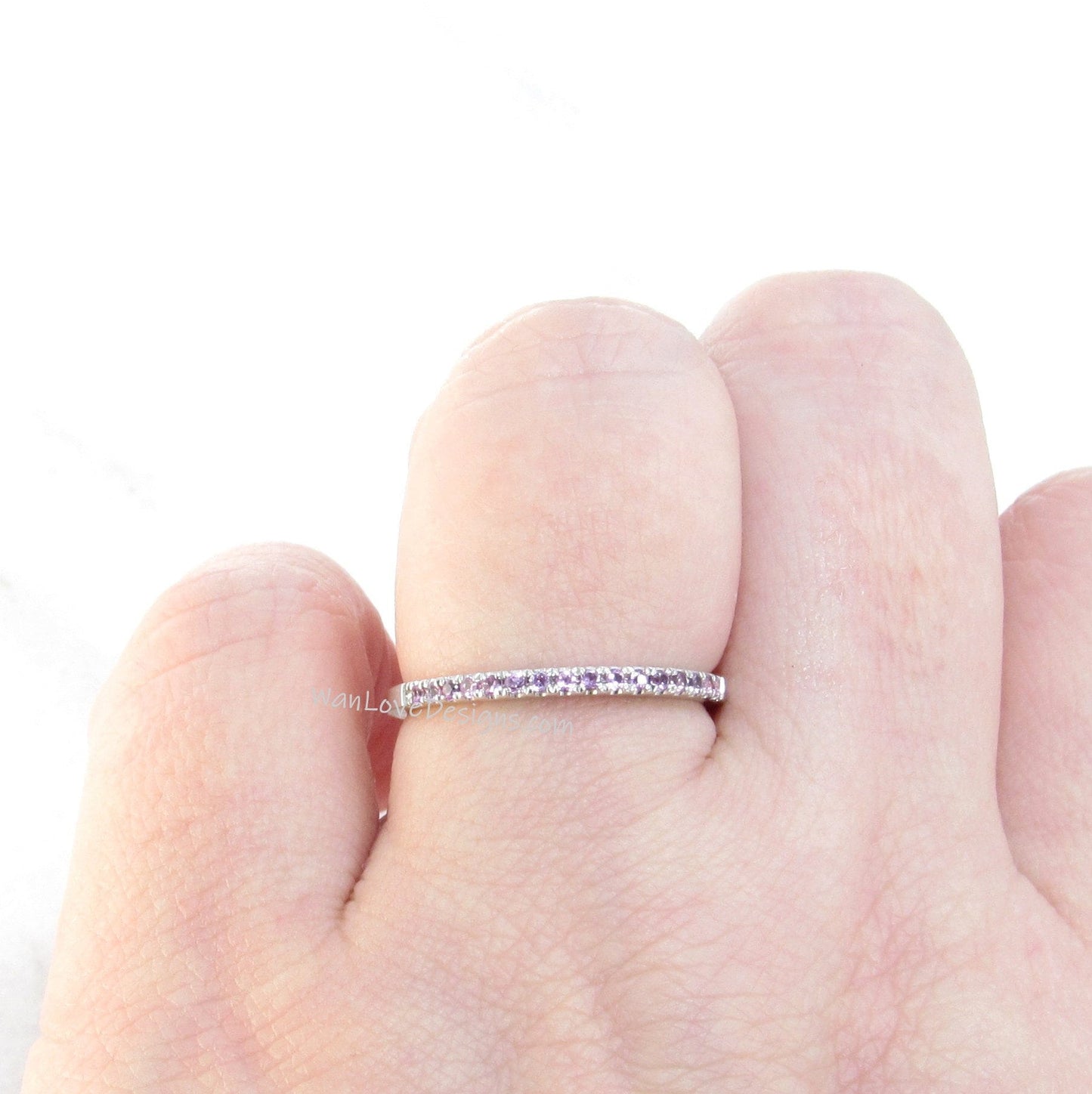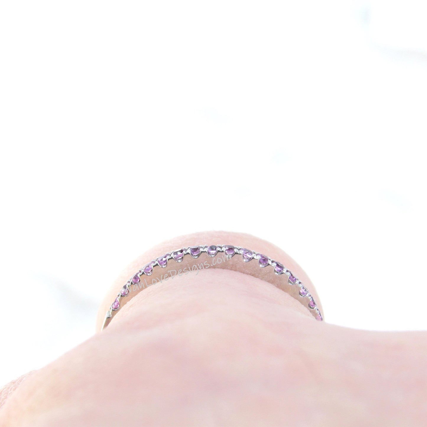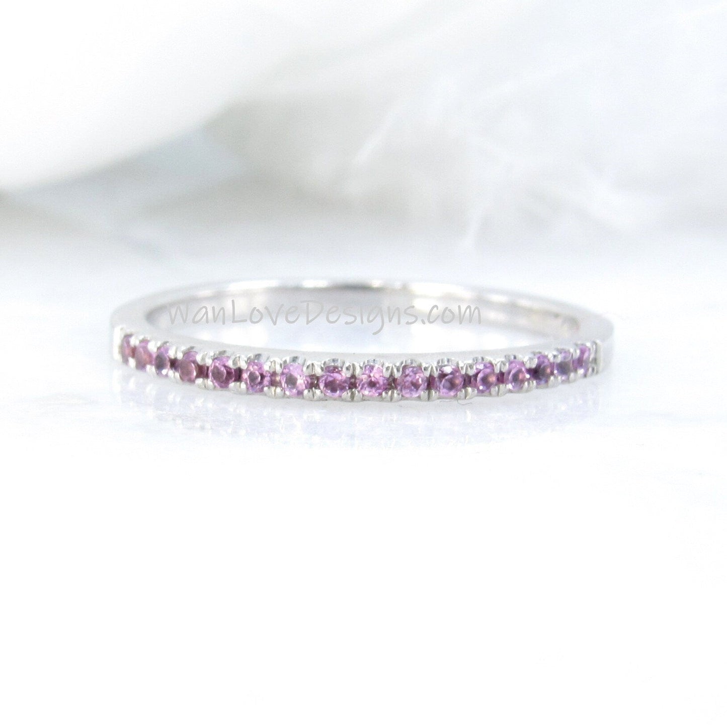 Pink Sapphire Wedding Band, Halfway Eternity, Stacking, Engagement Ring, 1.85mm, .22ct, Custom, Anniversary Gift, Pinky, Commitment
