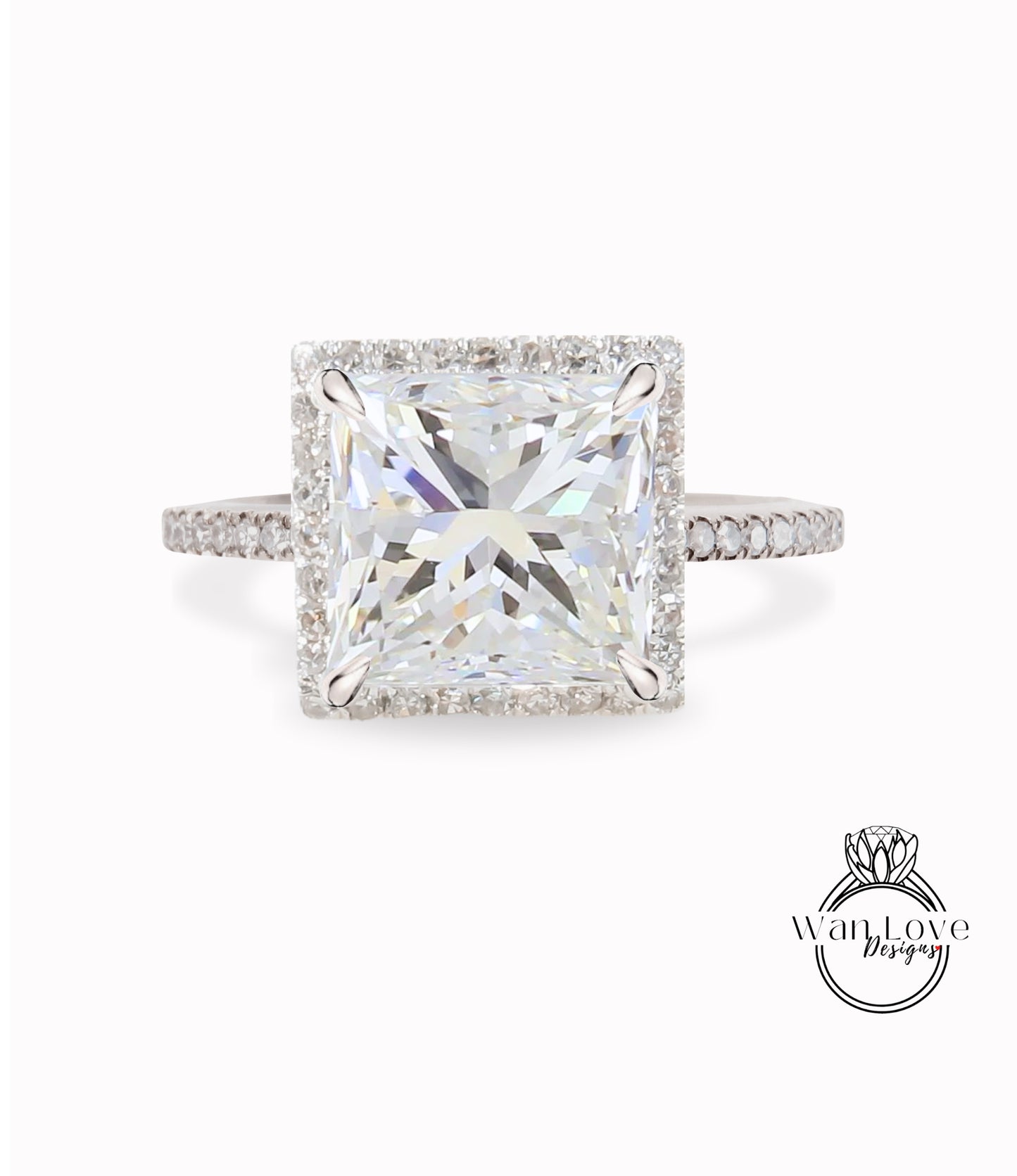 Princess Halo Diamond engagement ring Certified Square diamond ring half eternity vintage art deco rose gold ring anniversary promise ring