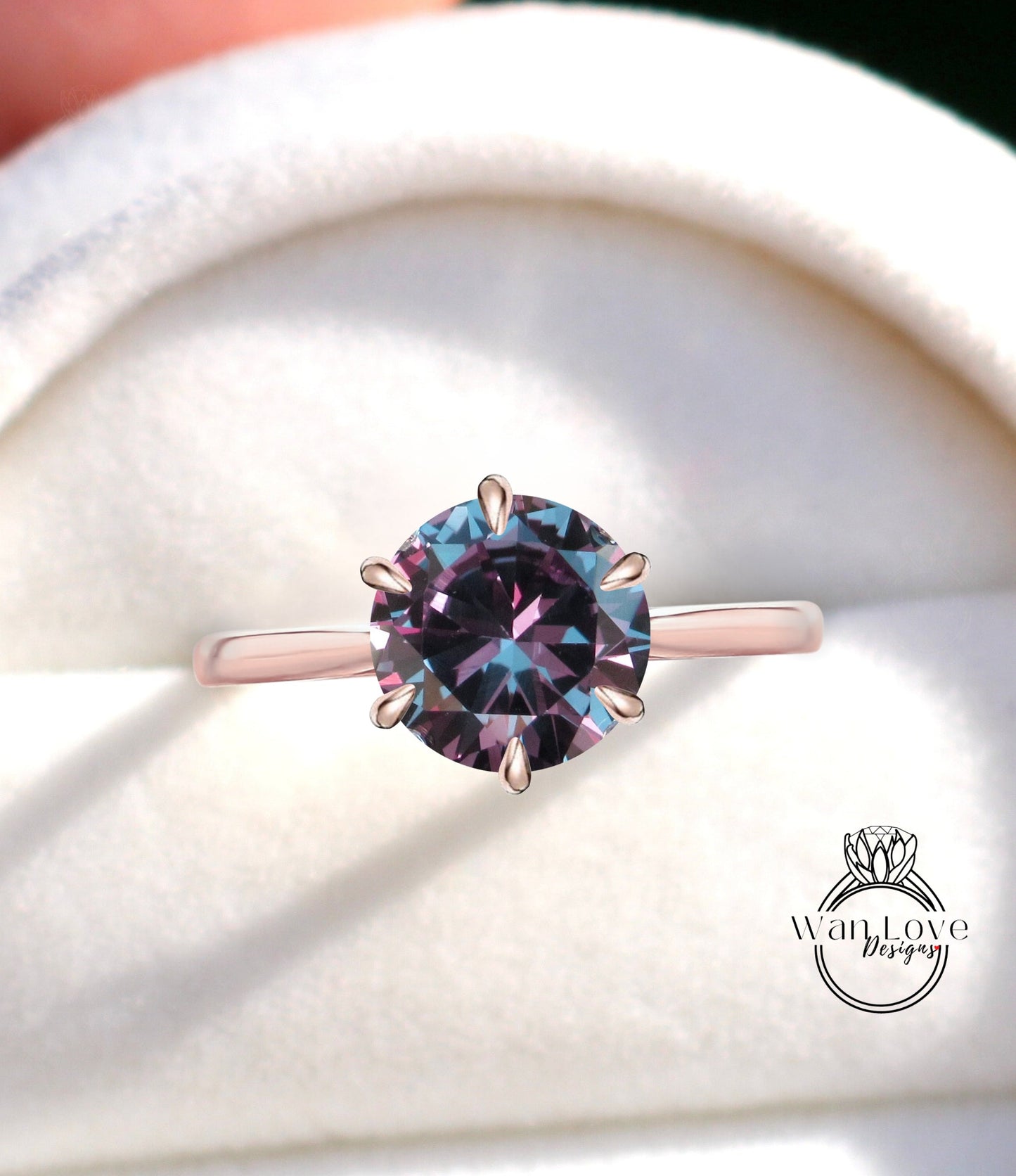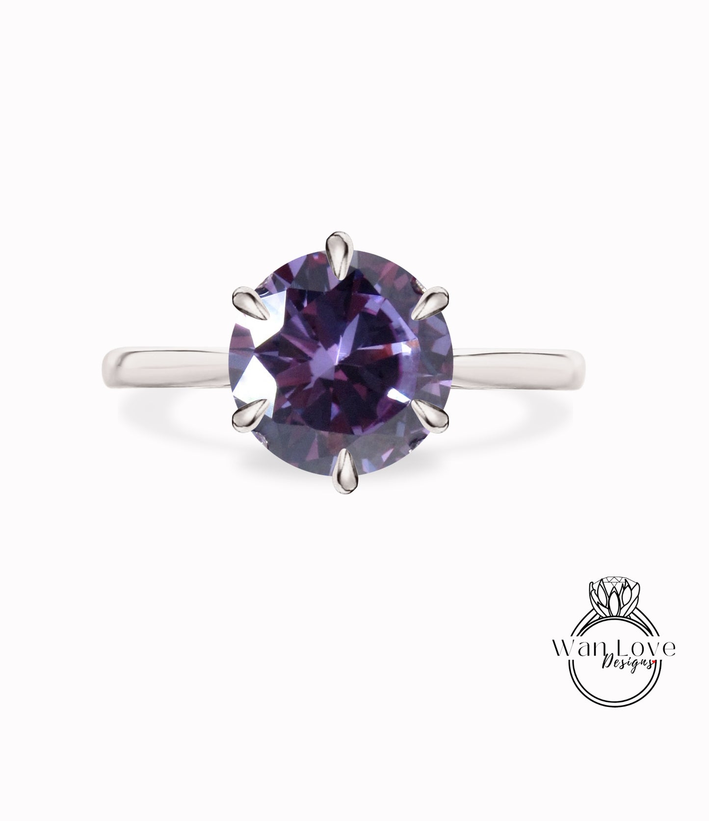 Purple Sapphire Alexandrite Color Change 6 Prong Engagement Ring, Solitaire, Round, 14k 18k White Yellow Rose Gold-Platinum-Custom-Wedding