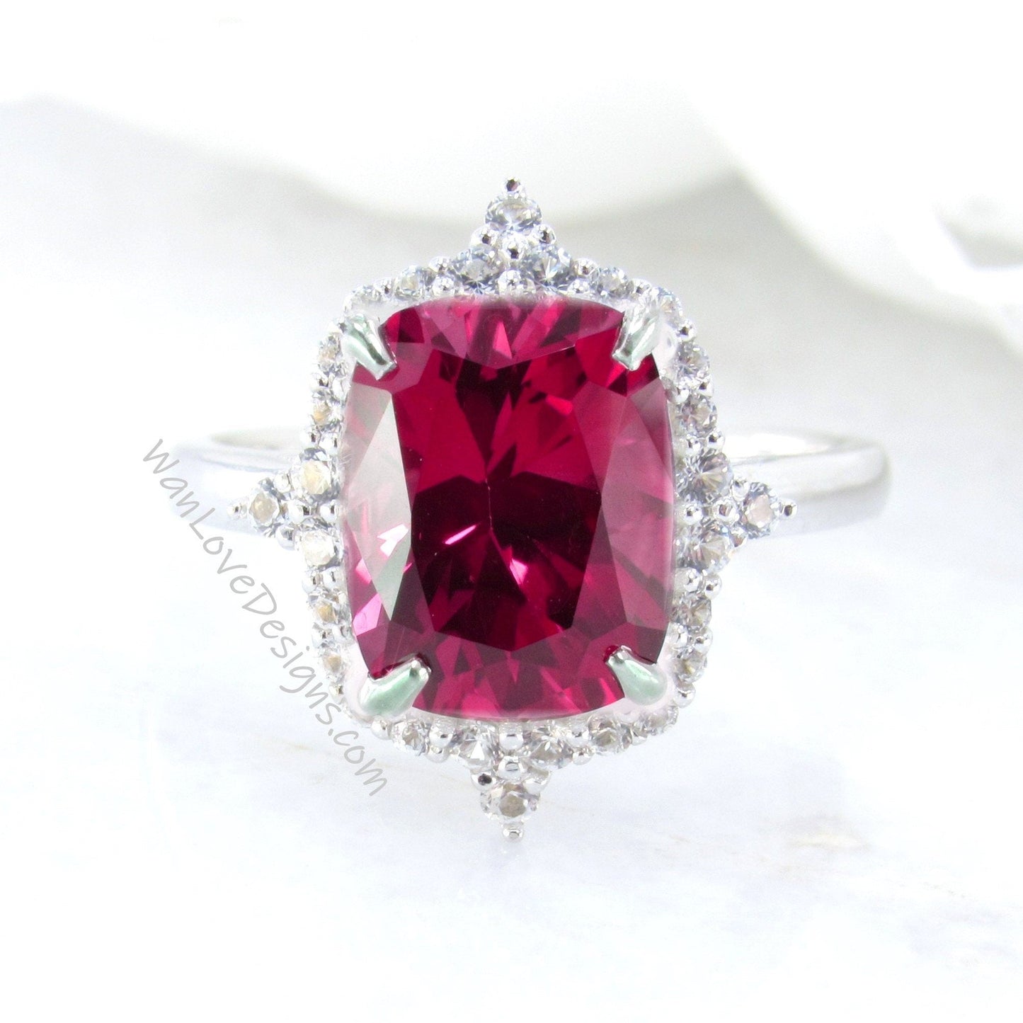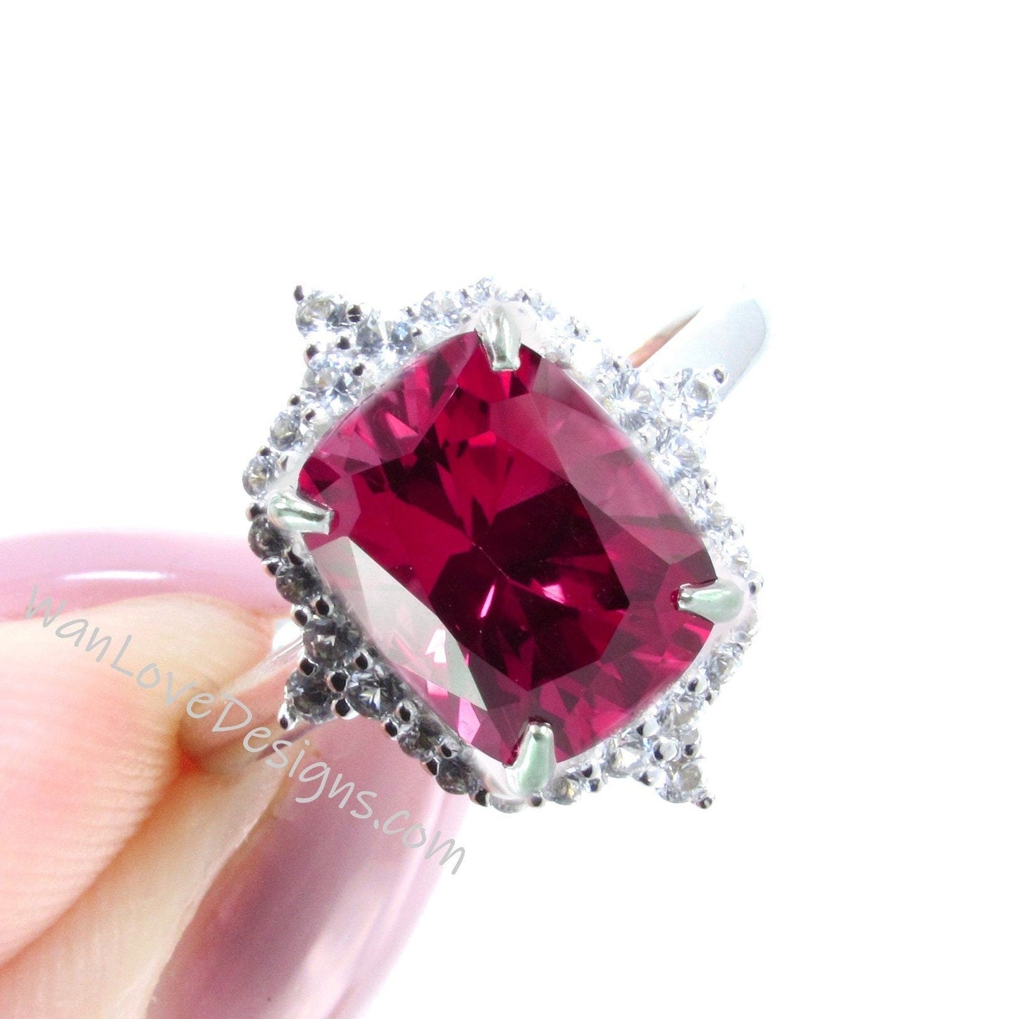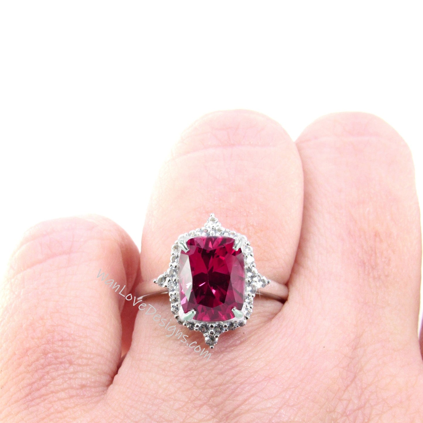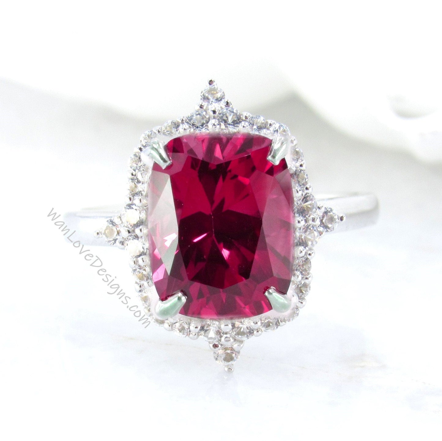 Ruby & Diamond Elongated Cushion Floral Halo Engagement Ring, Wedding-Anniversary-14k 18k White Yellow Rose Gold,Platinum