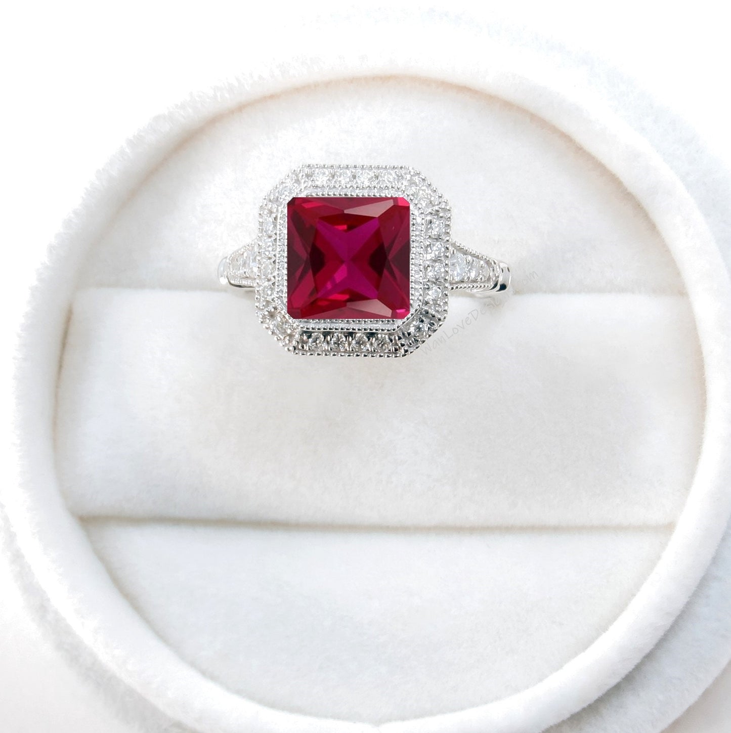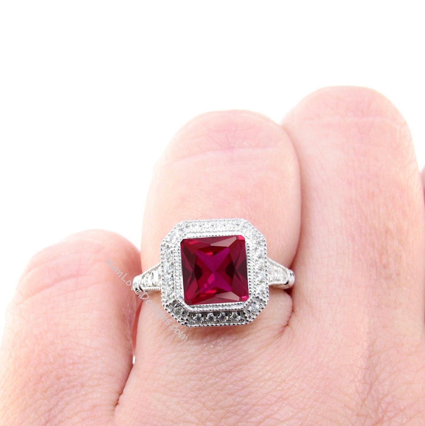 Ruby engagement ring 14k gold vintage Art Deco Bezel Halo engagement ring women Antique diamond Wedding Milgrain Bridal Anniversary gift