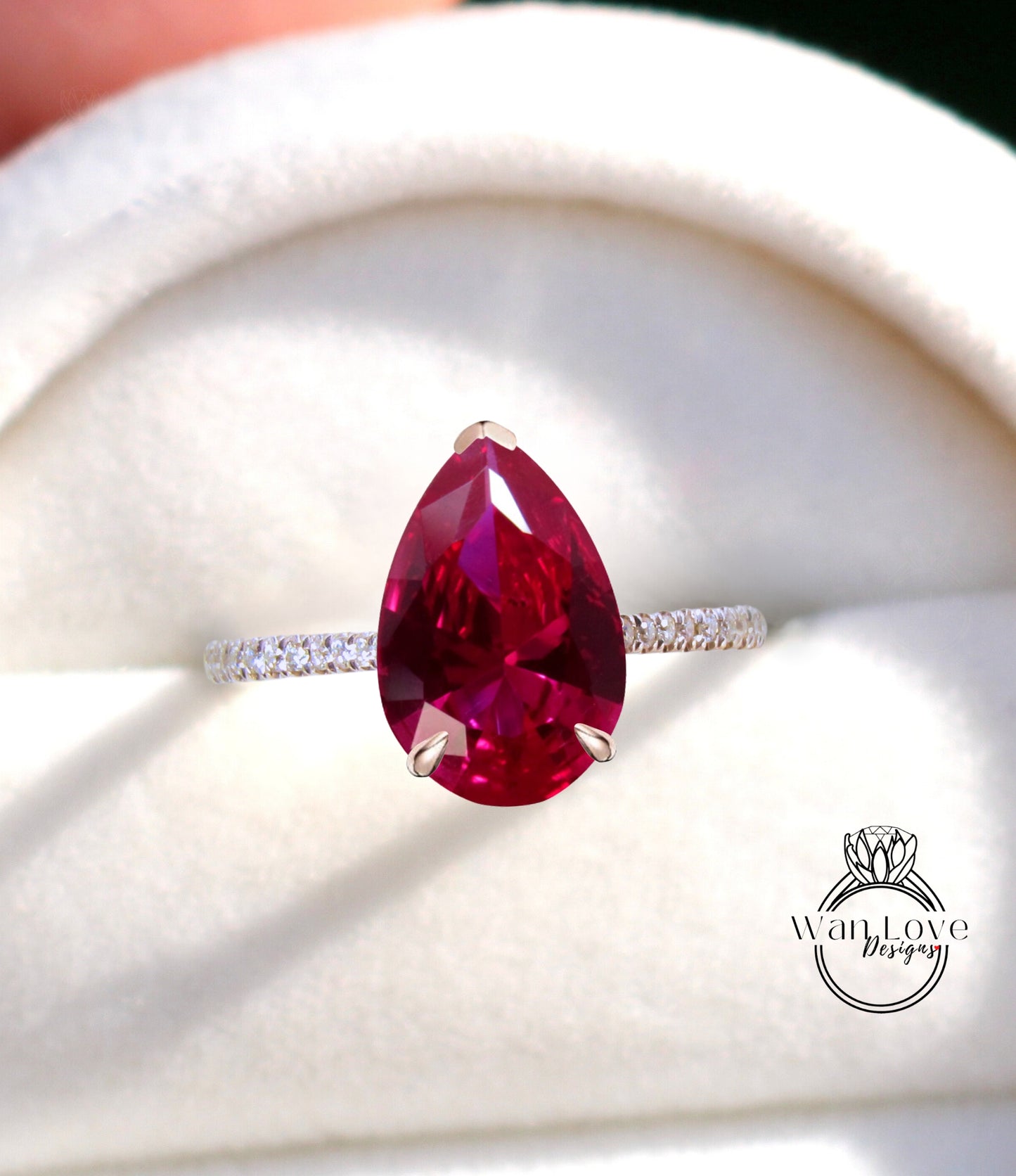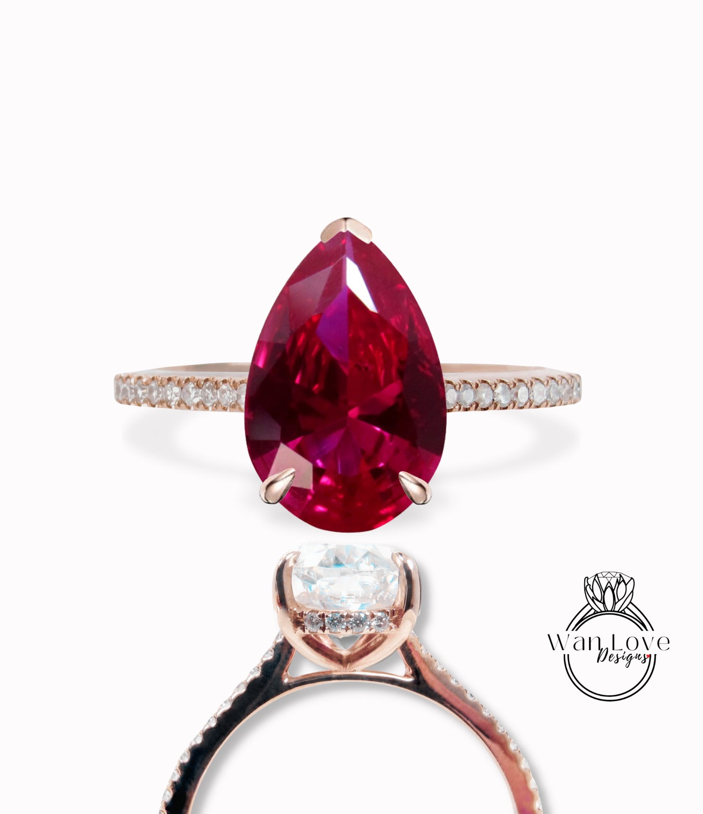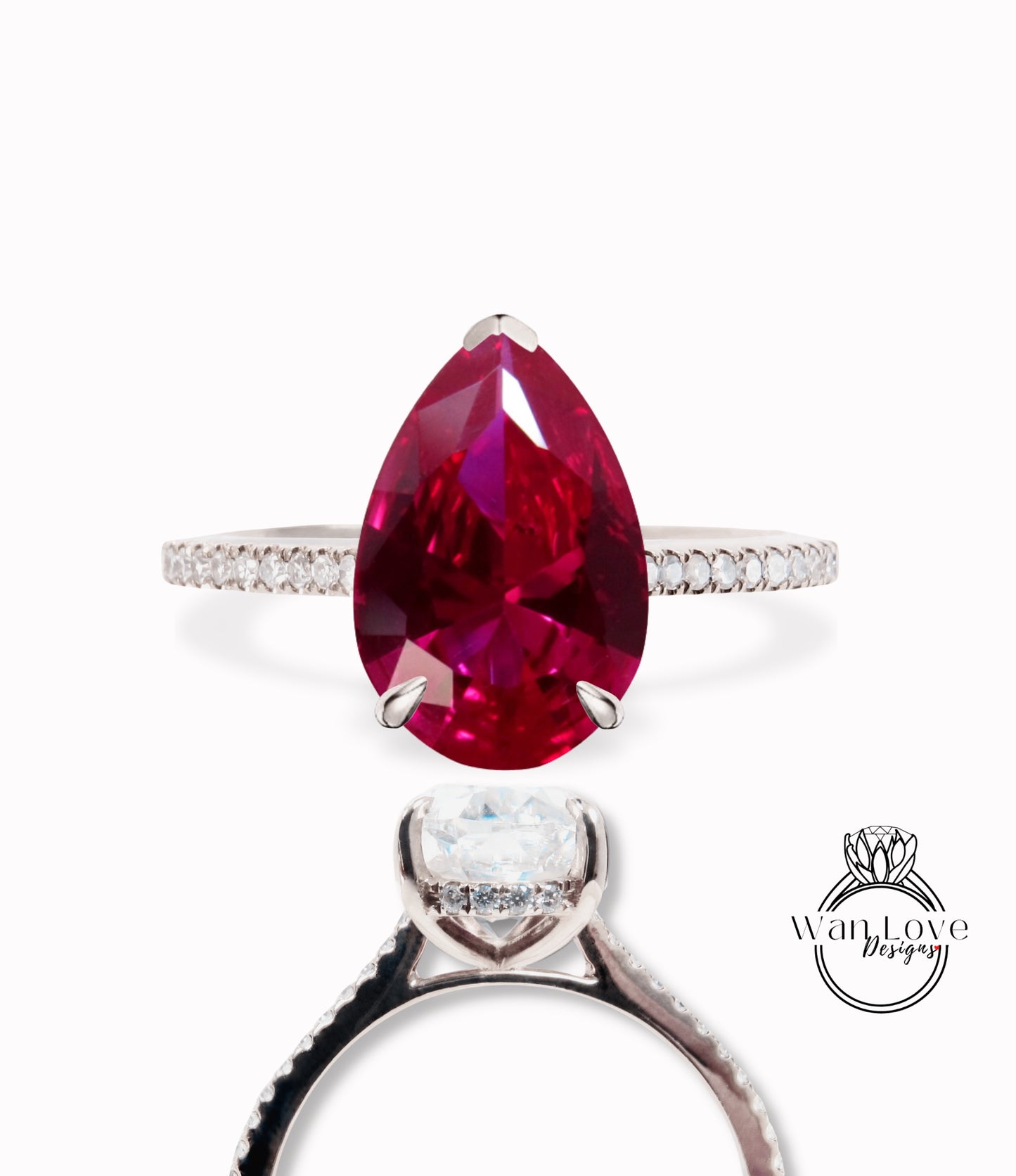 Ruby & Diamond Pear Side Halo Half Eternity Halfway Engagement Ring, Basket Cathedral, 14k 18k Gold-Platinum-Custom made-Bridal Wedding ring-Anniversary Gift