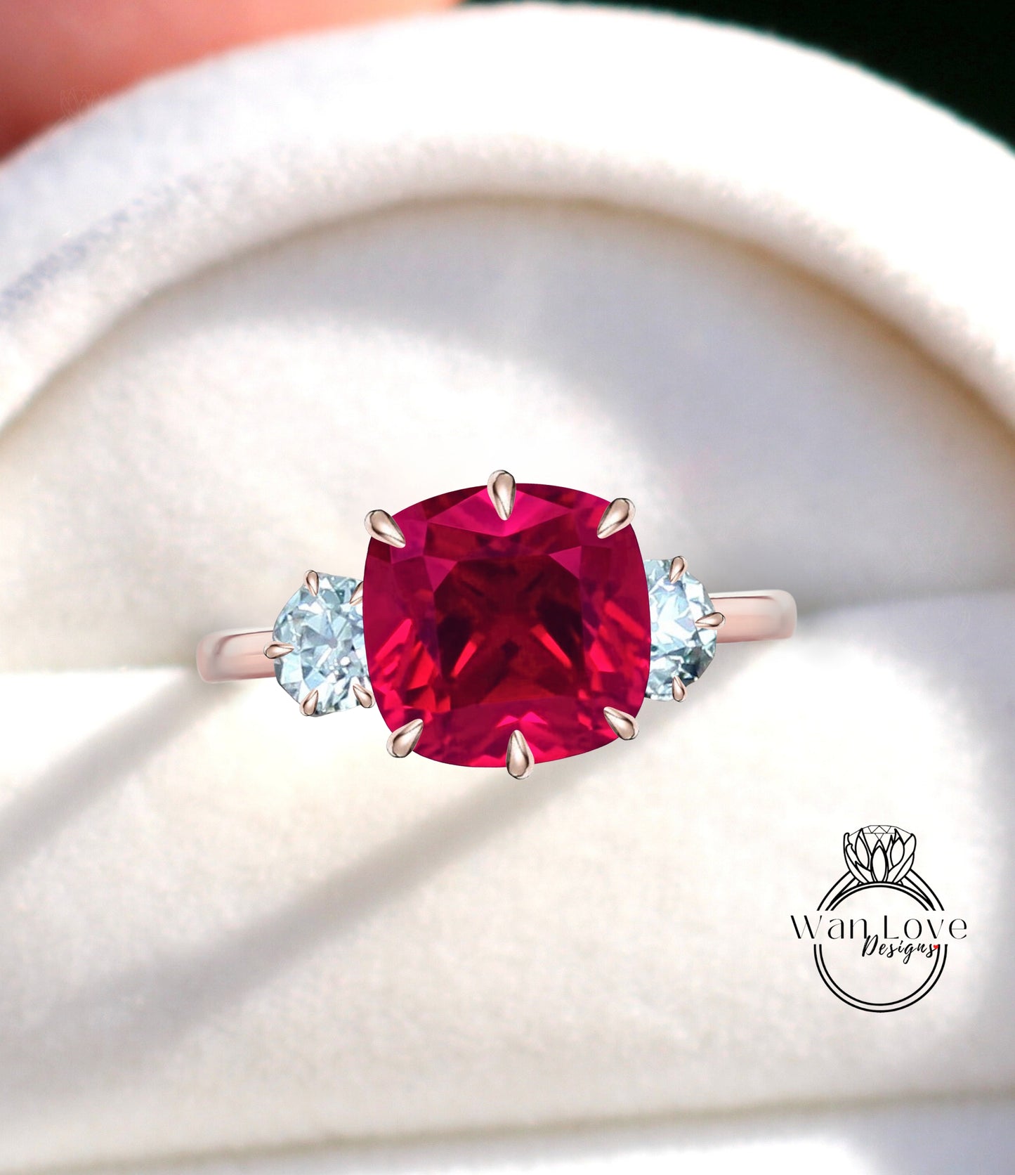Ruby engagement ring three stone ring OMC solid gold ring old mine cut ring vintage OEC ring art deco ring Cushion Ruby moissanite ring