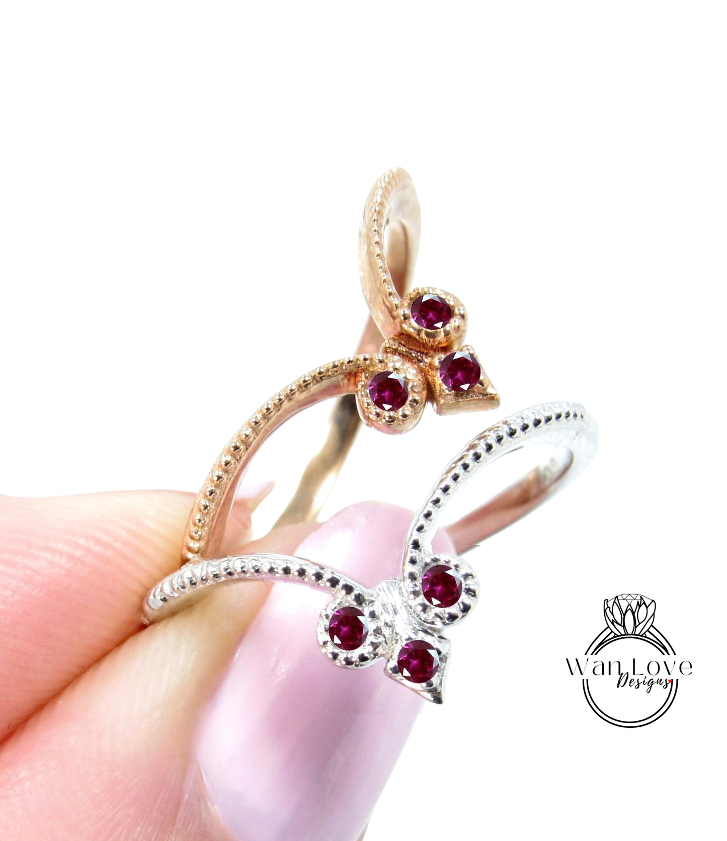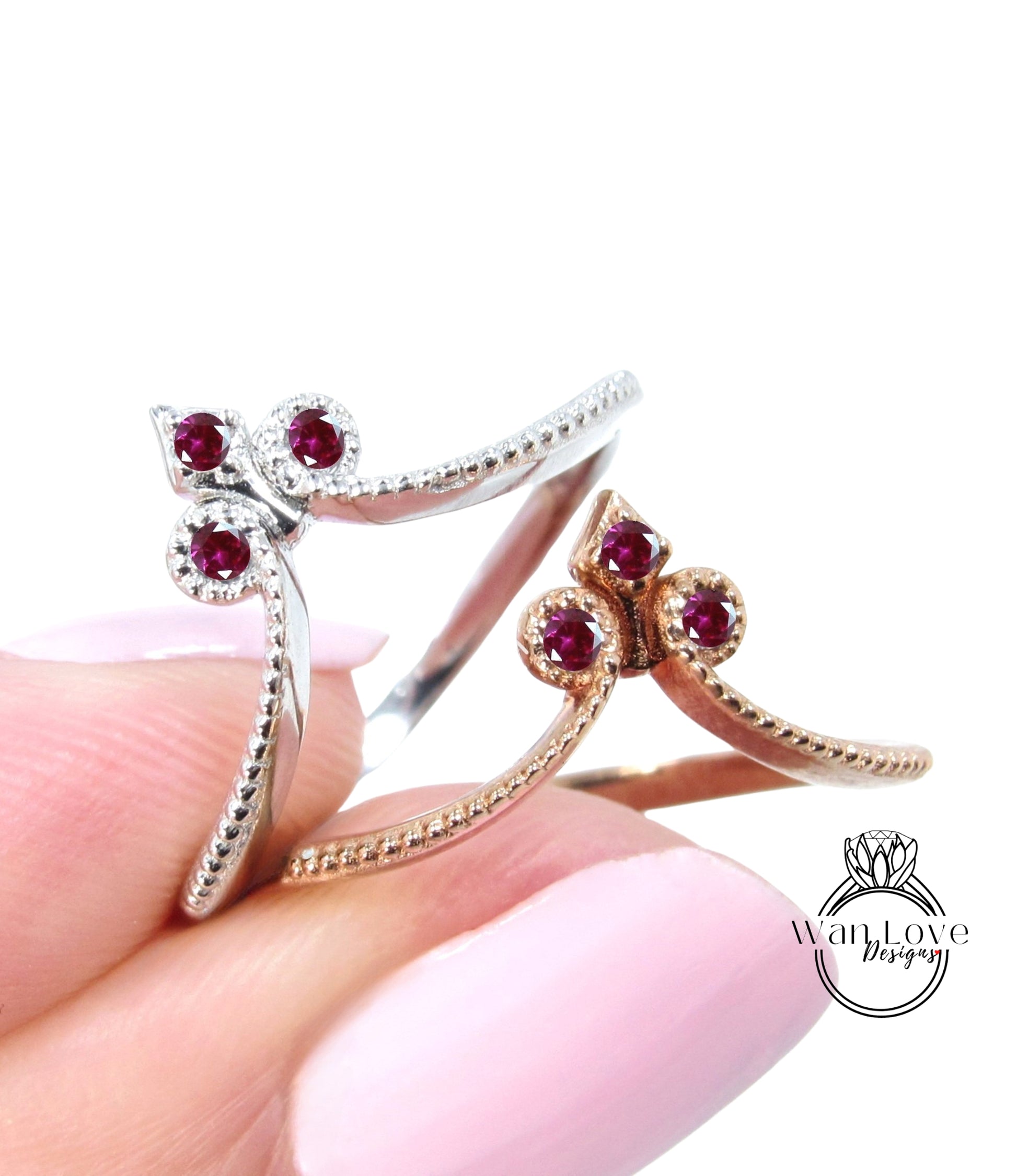 14K Rose Gold Ruby Chevron Ring/Diamond Milgrain Ring/Gold V Shape Ring/Perfect Matching Band/Stackable Ring/Wedding Band/Curved Band