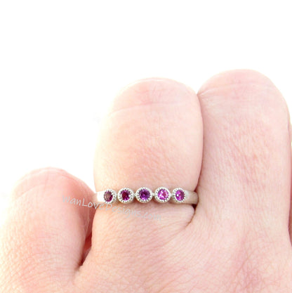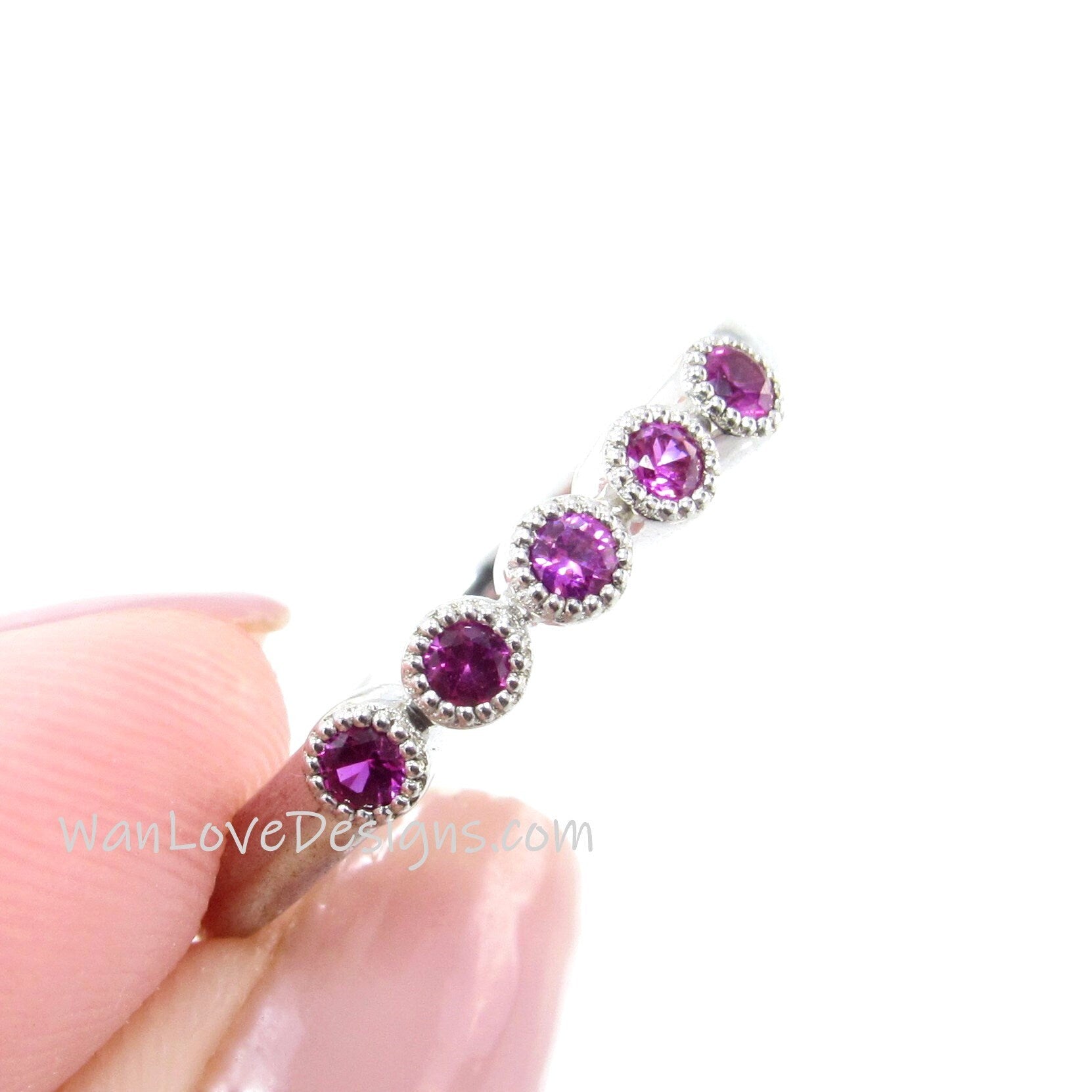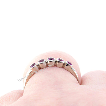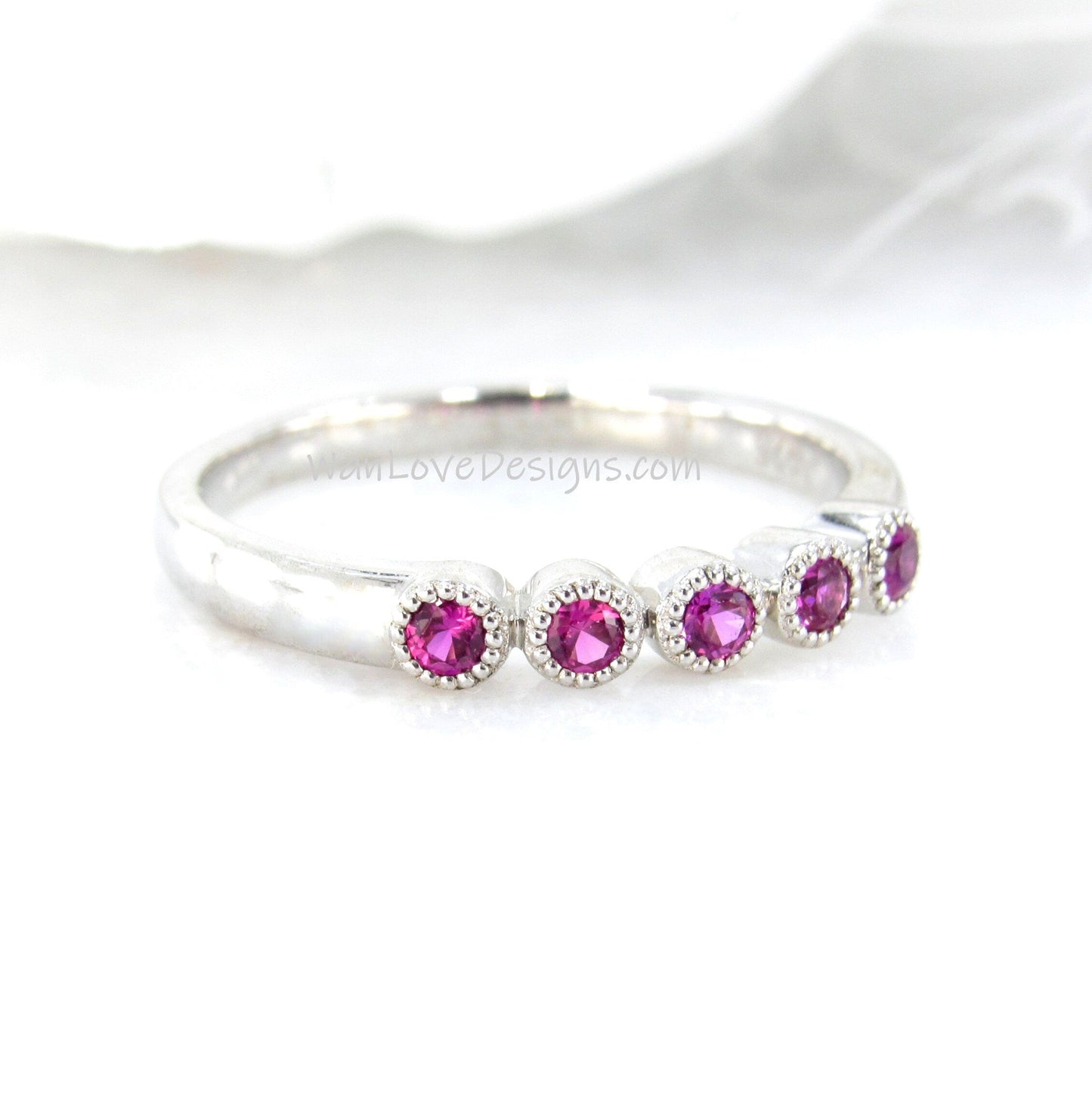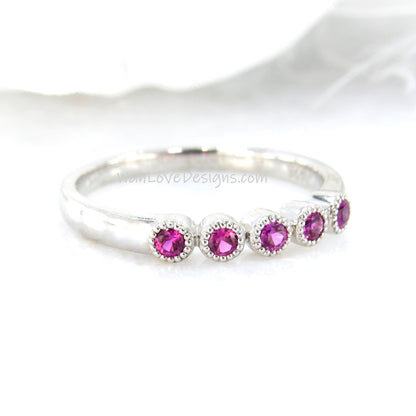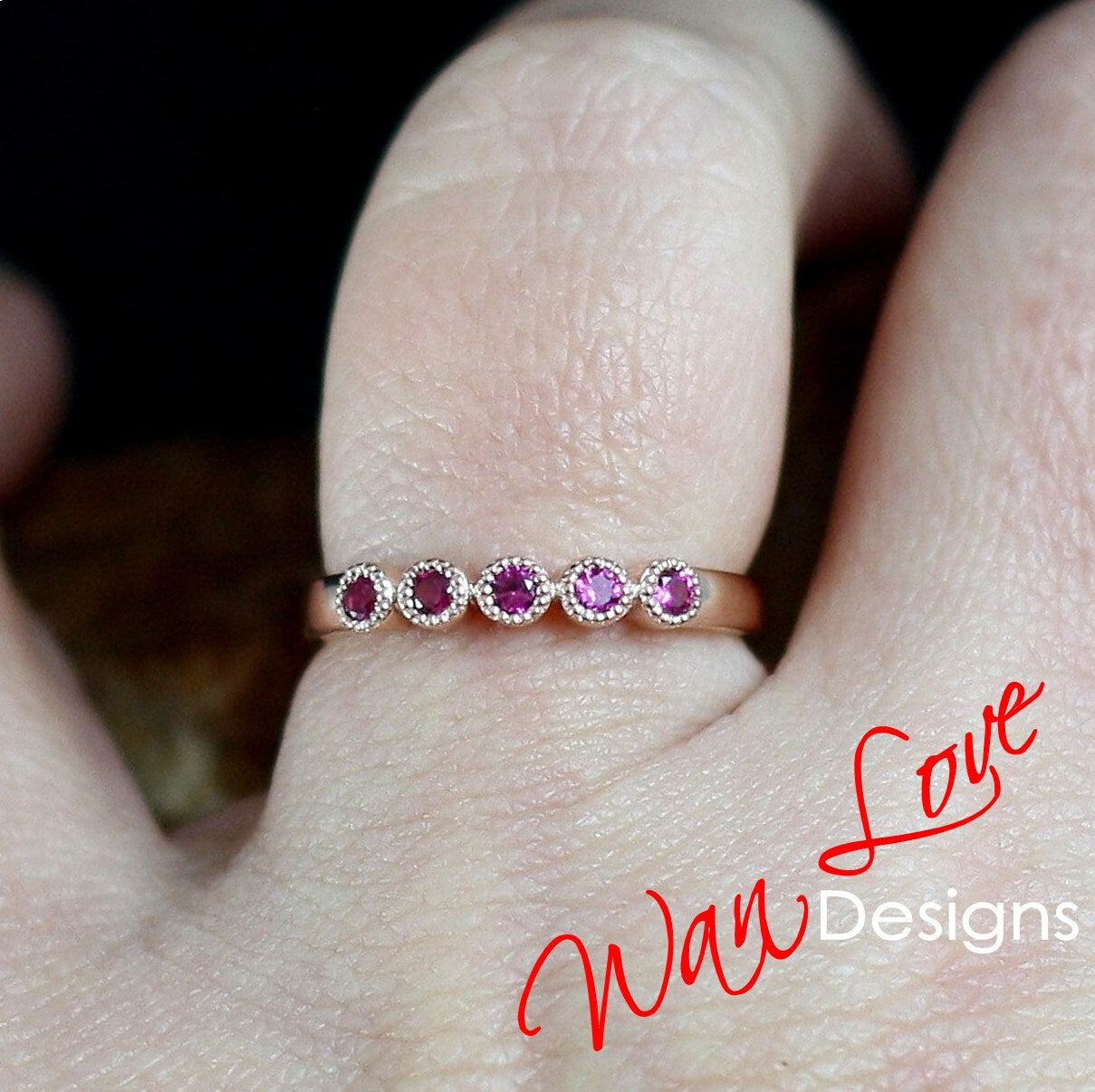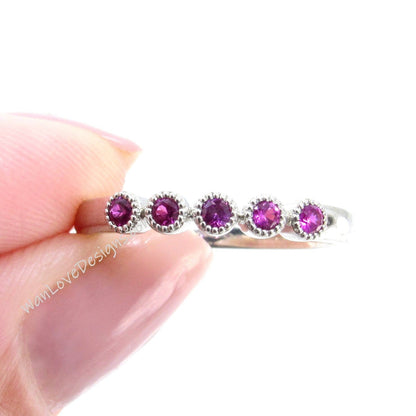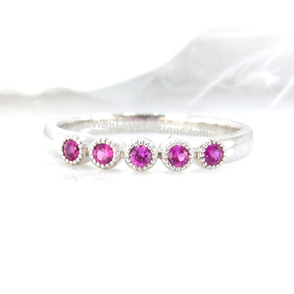 Ruby Wedding Band Ring Round Bezel Milgrain 5 Gemstone Antique Style Circle Custom Gem Stone Engagment Ring Band