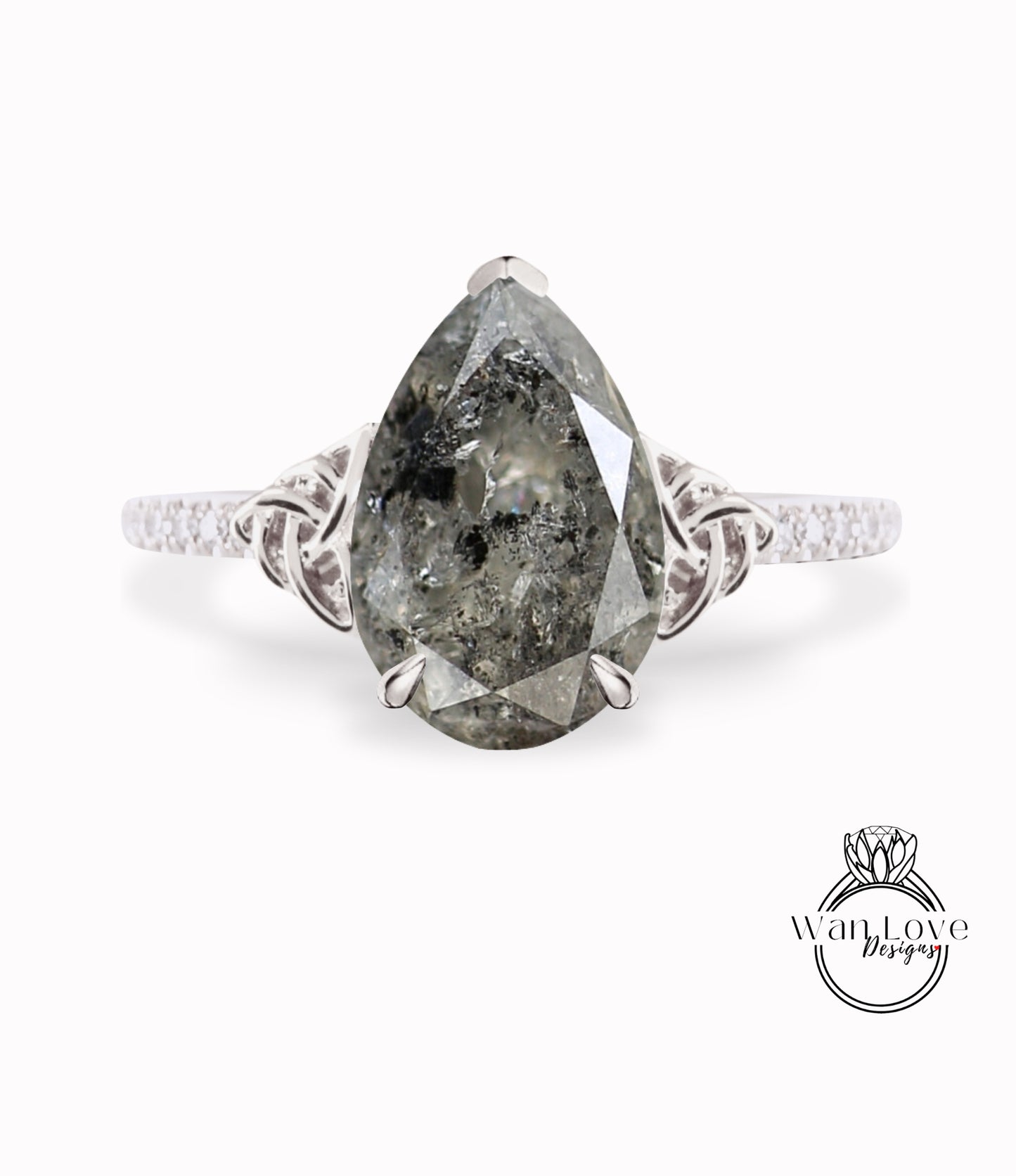 Salt And Pepper Diamond Celtic Knot Pear Engagement Ring, Custom, Wedding, Double,14k 18k White Yellow Rose Gold,Platinum, Anniversary Gift
