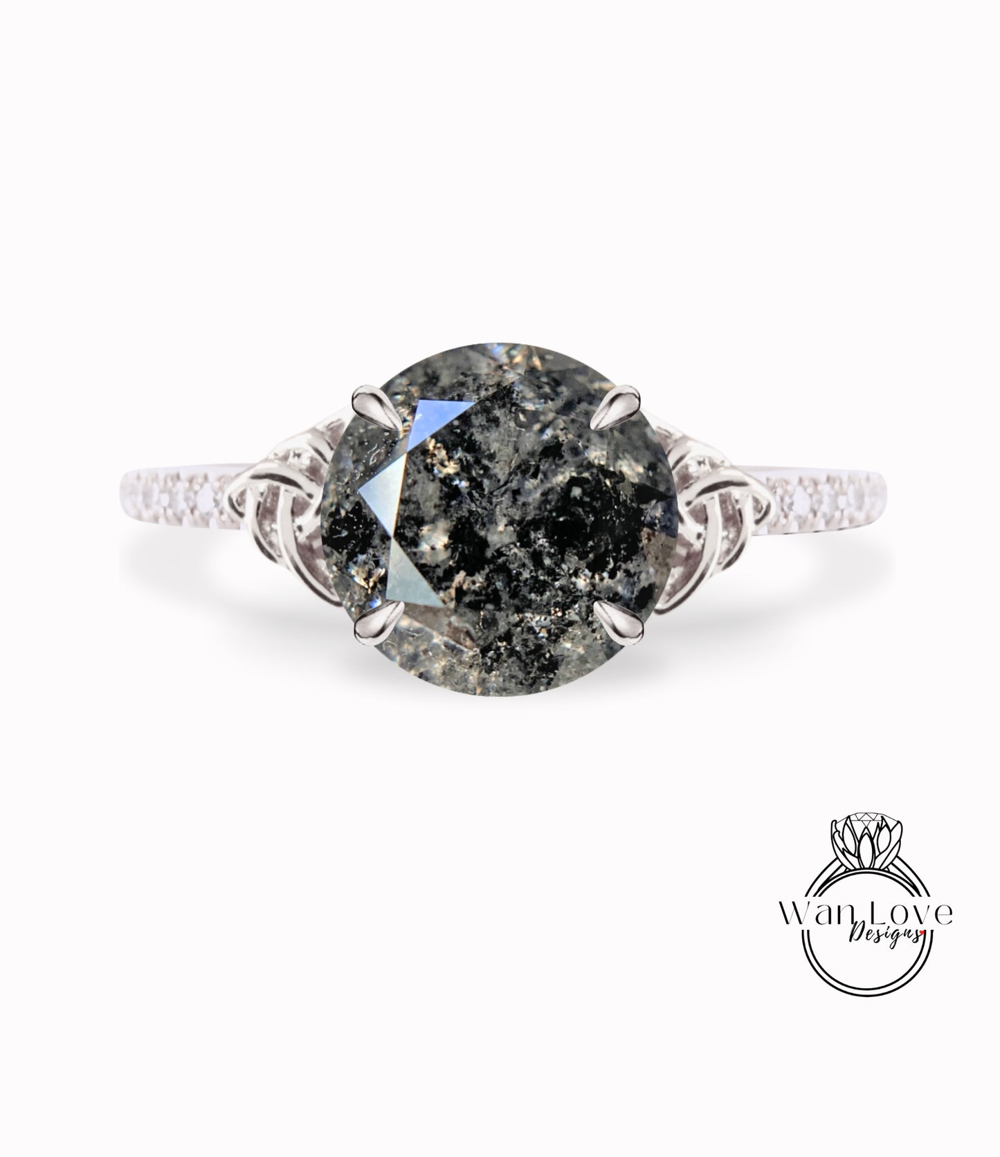 Salt & Pepper Diamond Celtic Knot Round Engagement Ring, Custom, 14k 18k White Yellow Rose Gold, Platinum-Wedding-Anniversary Gift