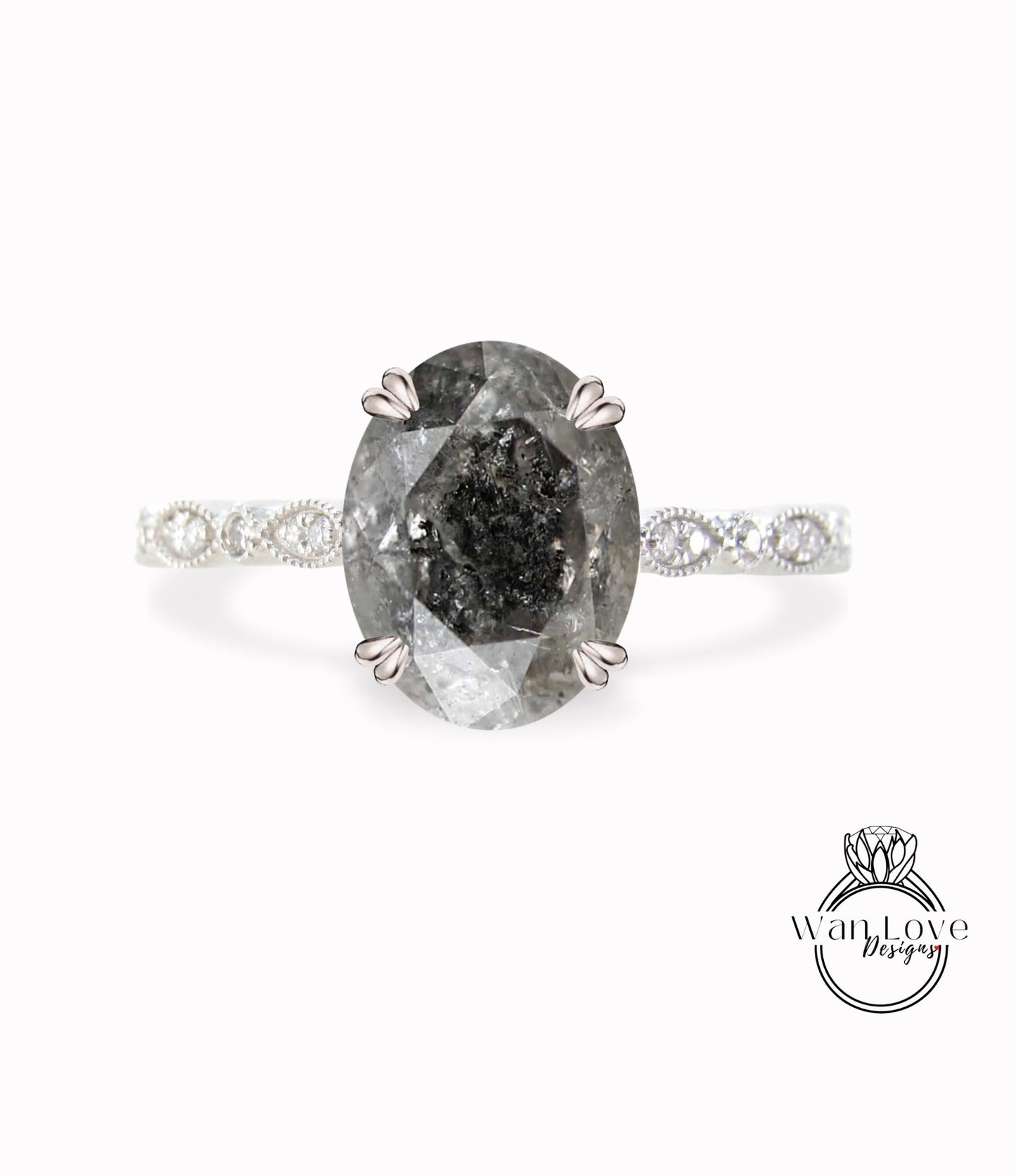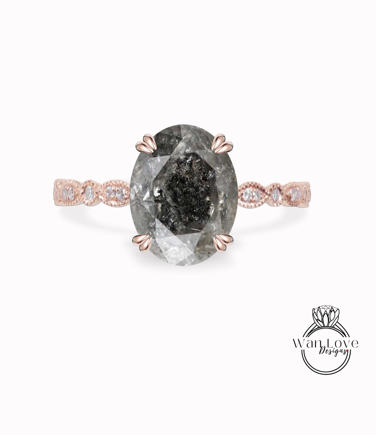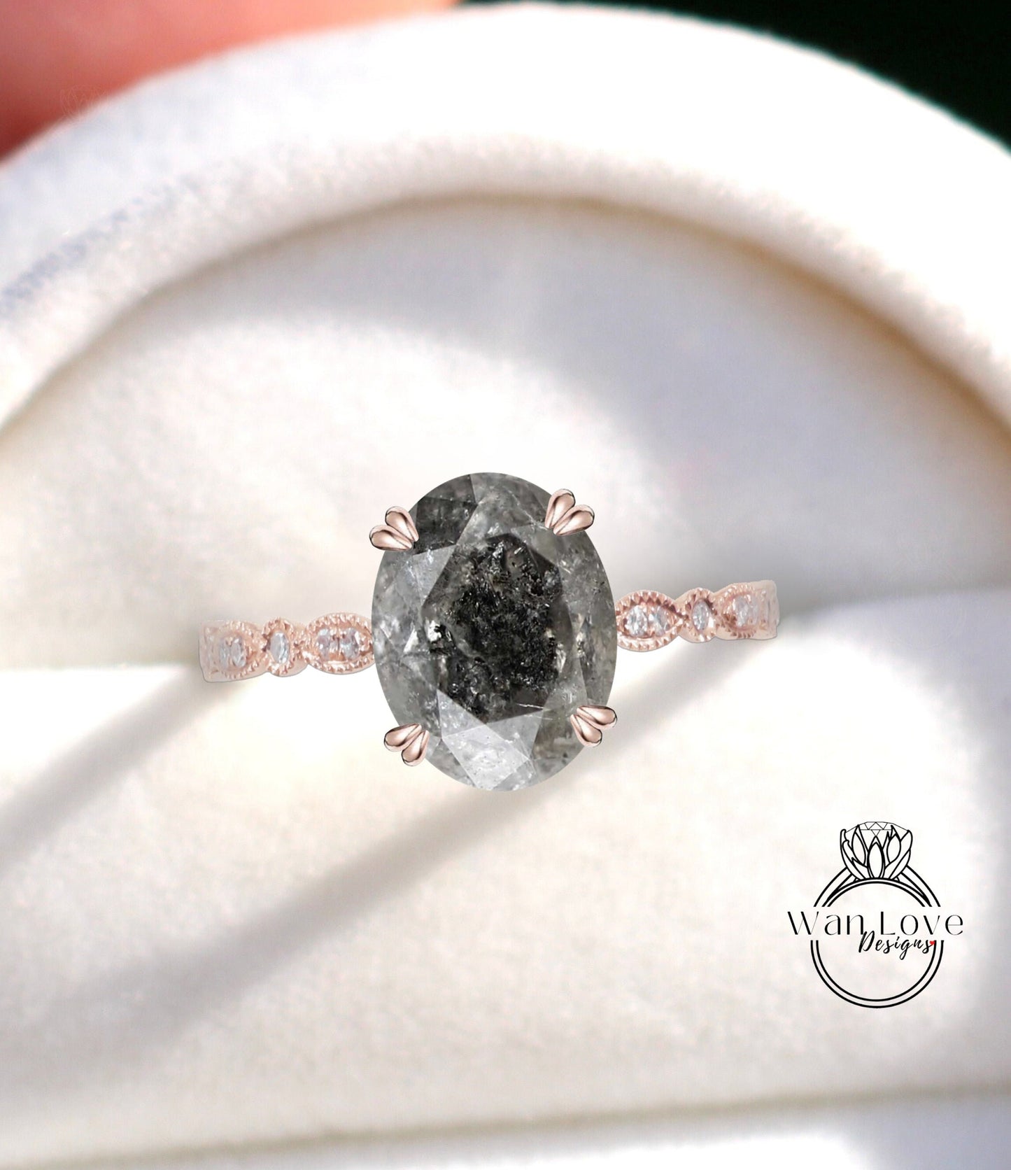 Vintage Oval cut Salt & Pepper Diamond engagement ring Rose gold ring Art deco Milgrain antique wedding Bridal Anniversary ring promise ring