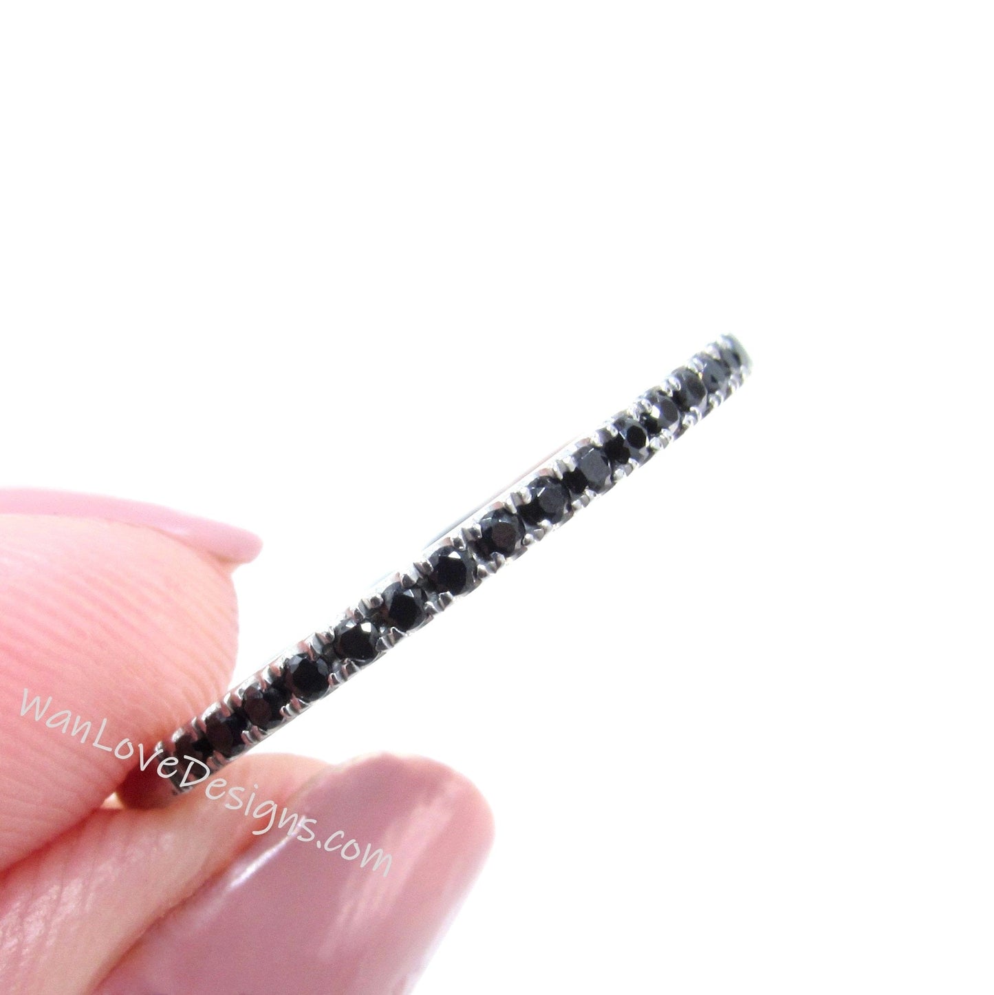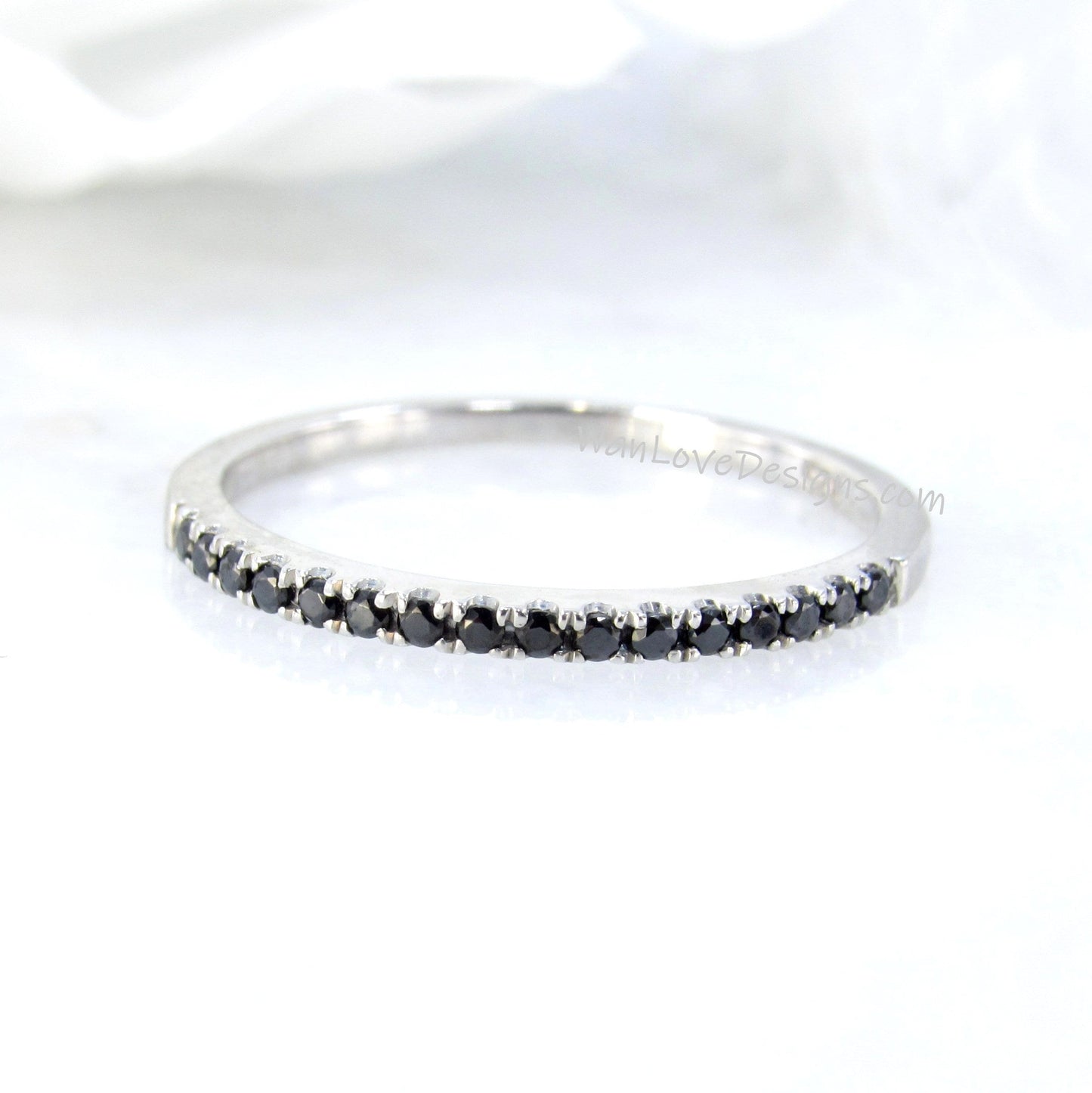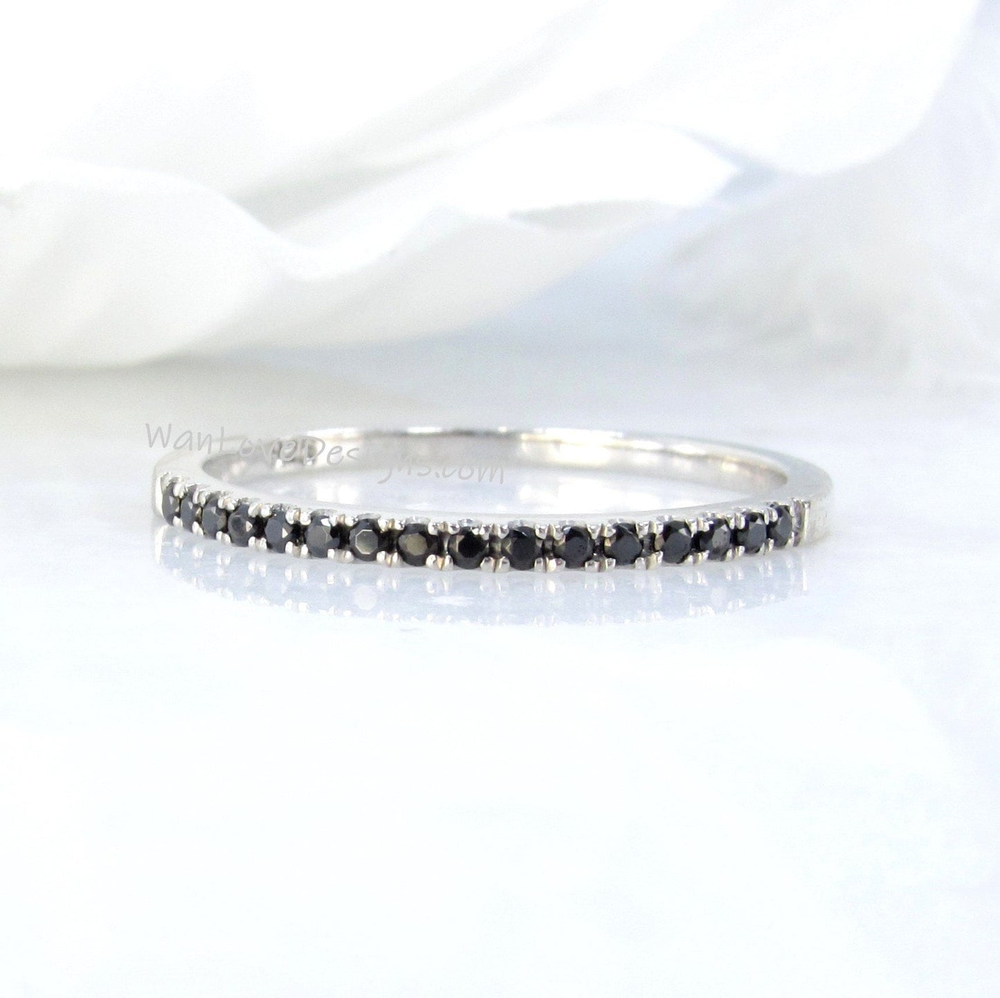 Sample Sale Ready to ship-Thin Dainty Black Spinel Half Eternity Stackable Wedding Band, Engagement Ring, Anniversary Gift-1.8mm.
