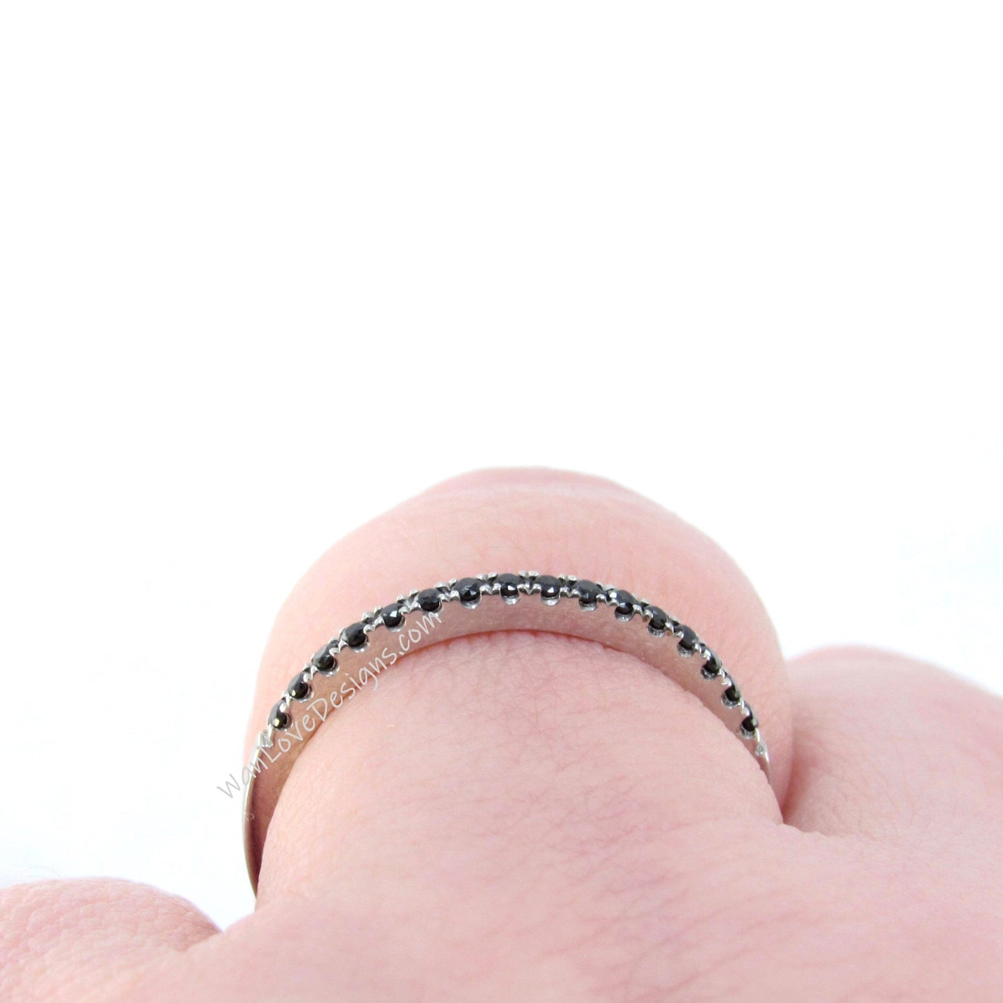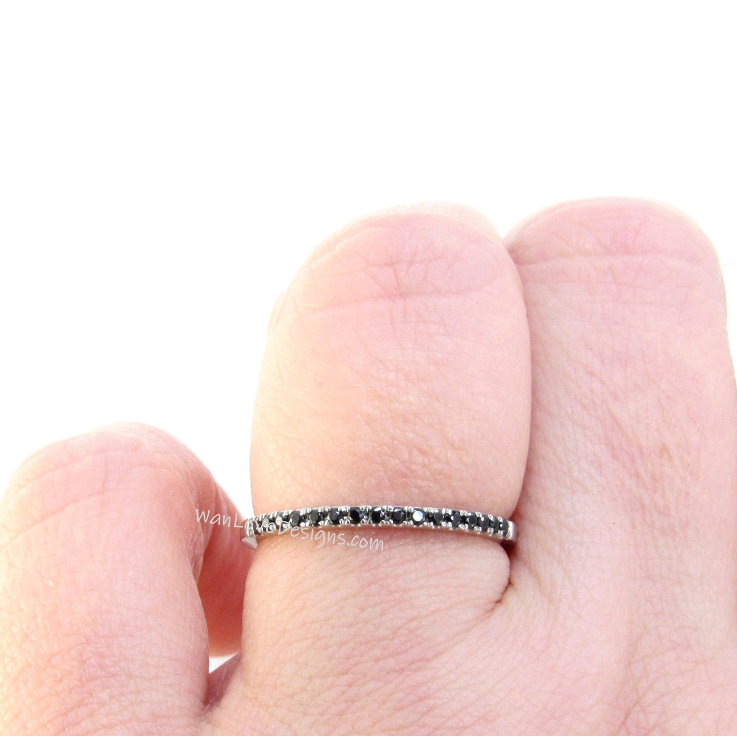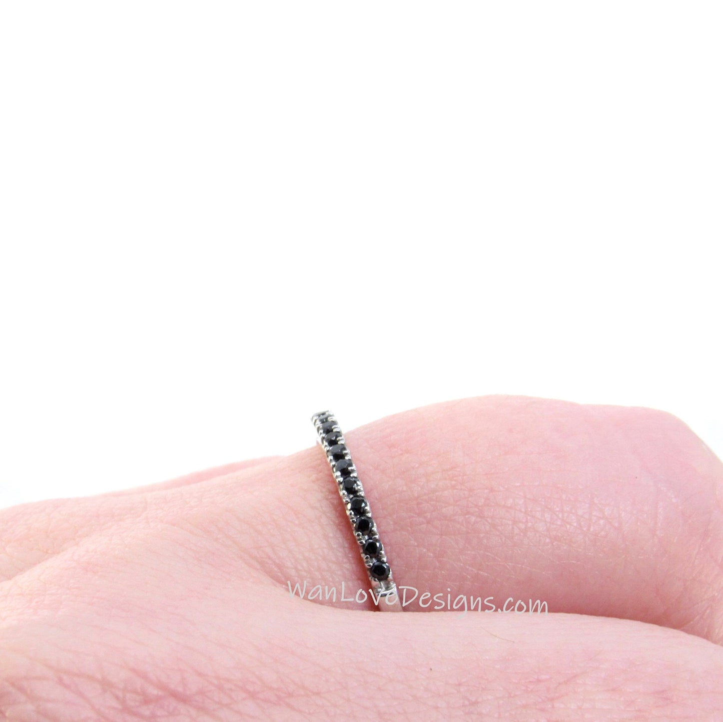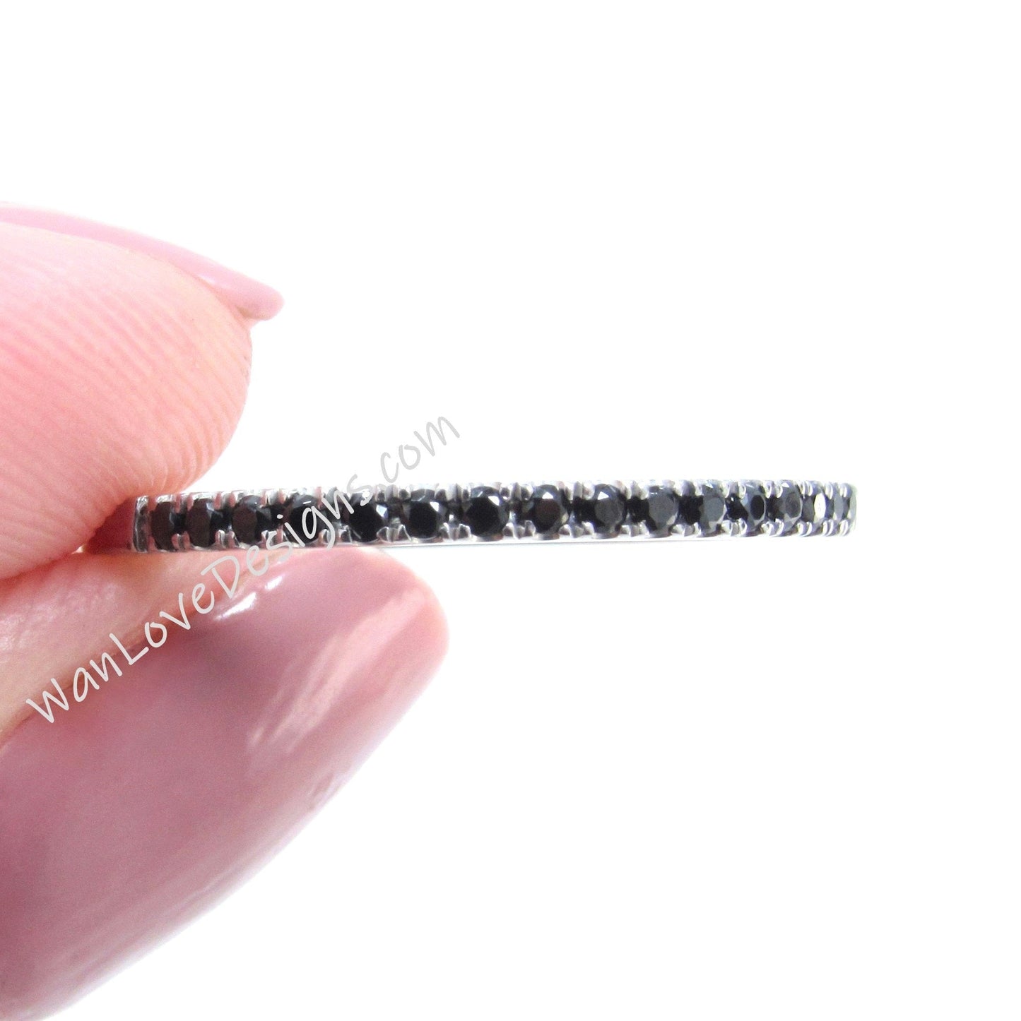Sample Sale Ready to ship-Thin Dainty Black Spinel Half Eternity Stackable Wedding Band, Engagement Ring, Anniversary Gift-1.8mm.
