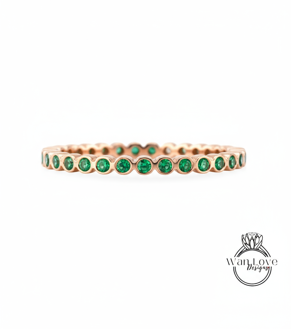 Simple Bezel Round Cut Diamond Wedding Bands/ 14K Gold Rings/ Moissanite Matching Bands/ Bridal Stacking Rings/ BirthStone Choice Rings