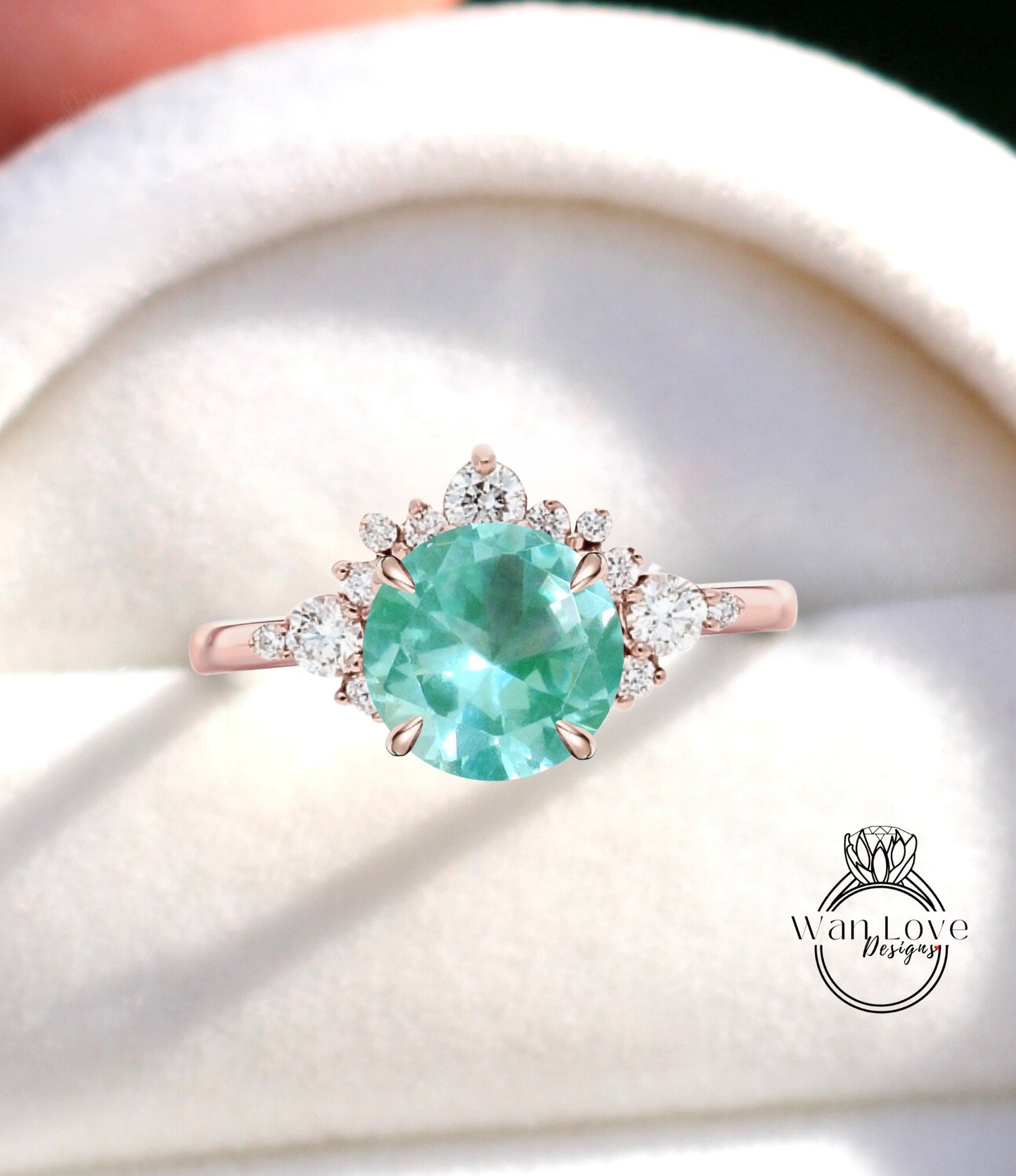 Teal Green Blue Spinel Cluster Half Halo engagement ring Diamonds Unique cluster White Rose Gold Ring woman Promise Anniversary Gift