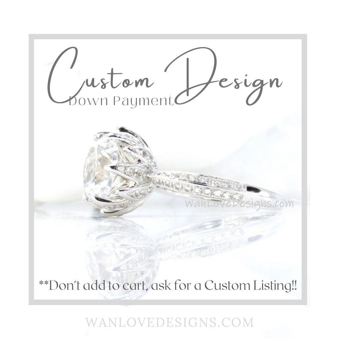This listing is for your down payment on your Custom Order. Please Contact us with all your details for a price quote. Pricing will depend on the type & size of gems chosen.