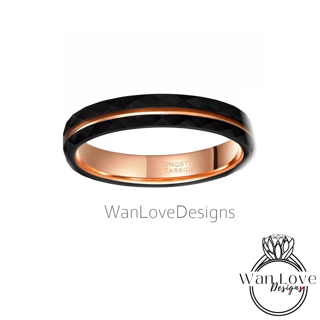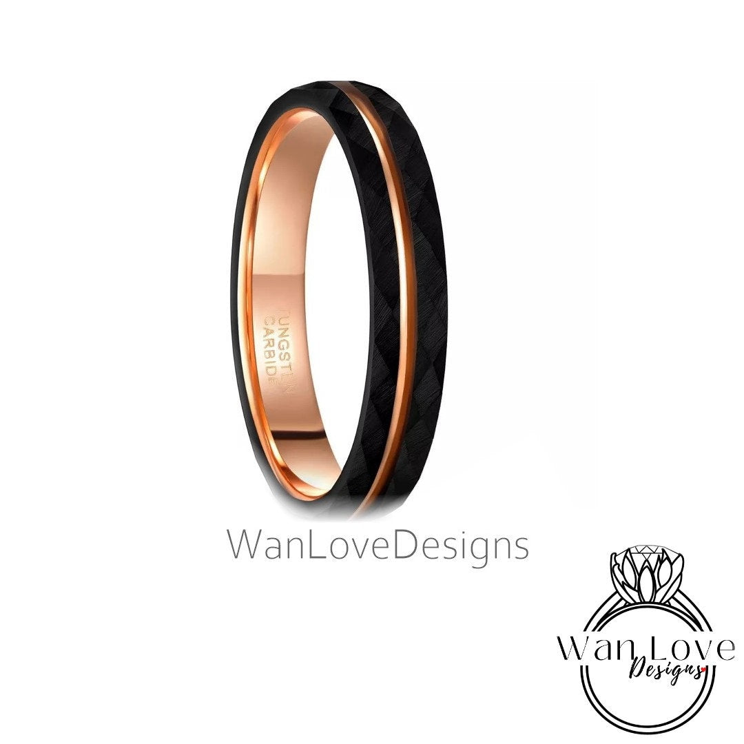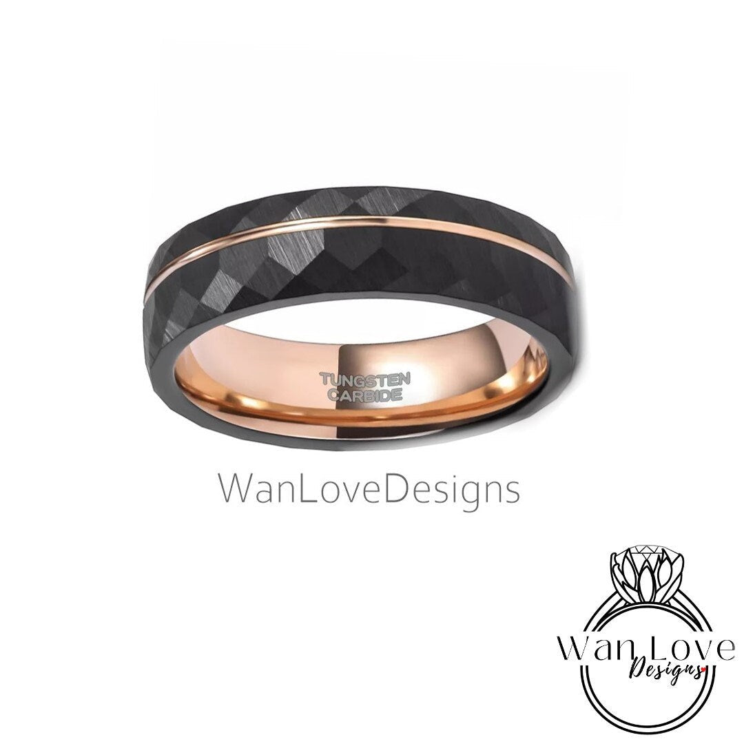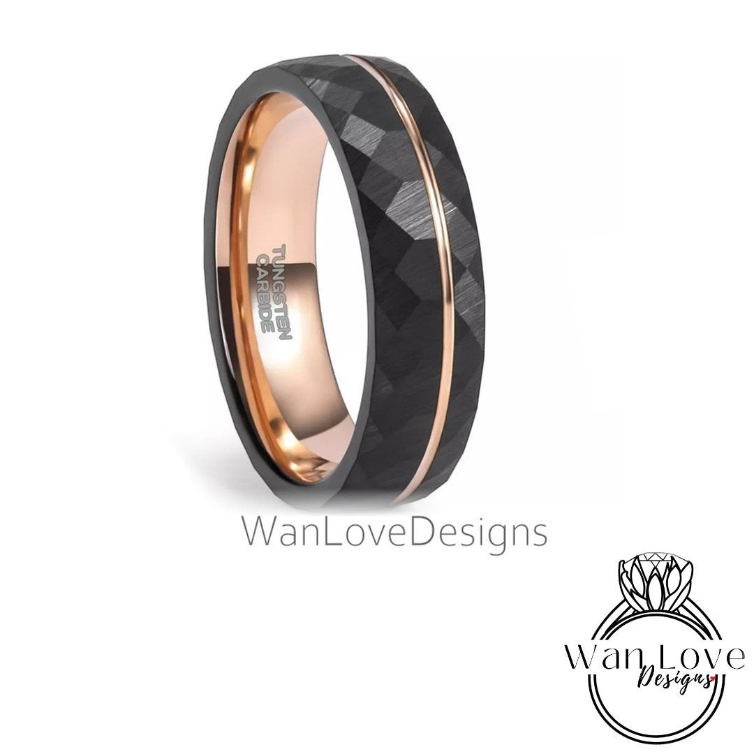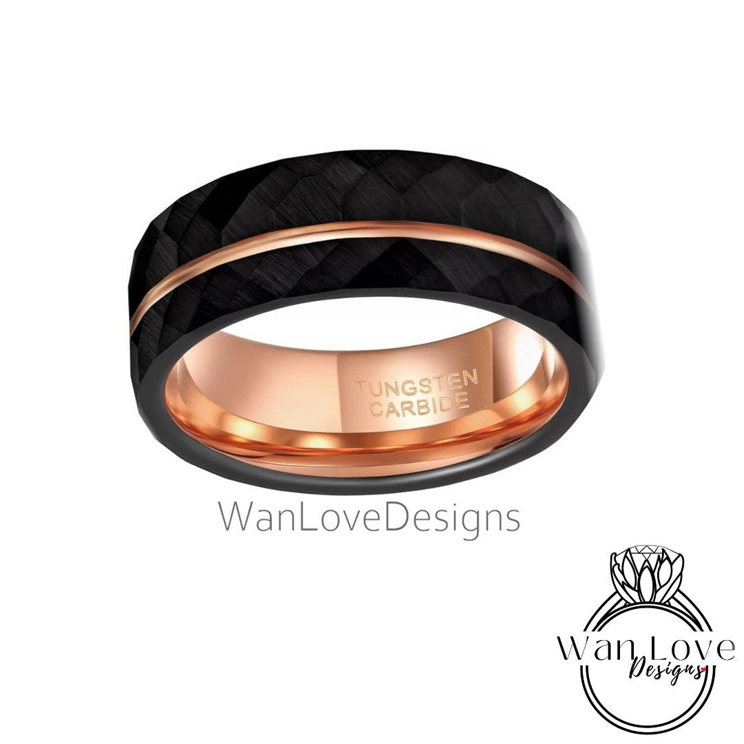 Tungsten Black Hammered Ring - Black Rose Gold Tungsten - 8mm Hammered Band - Hammered Tungsten Band - Stripe Wedding Bands - Striped Band