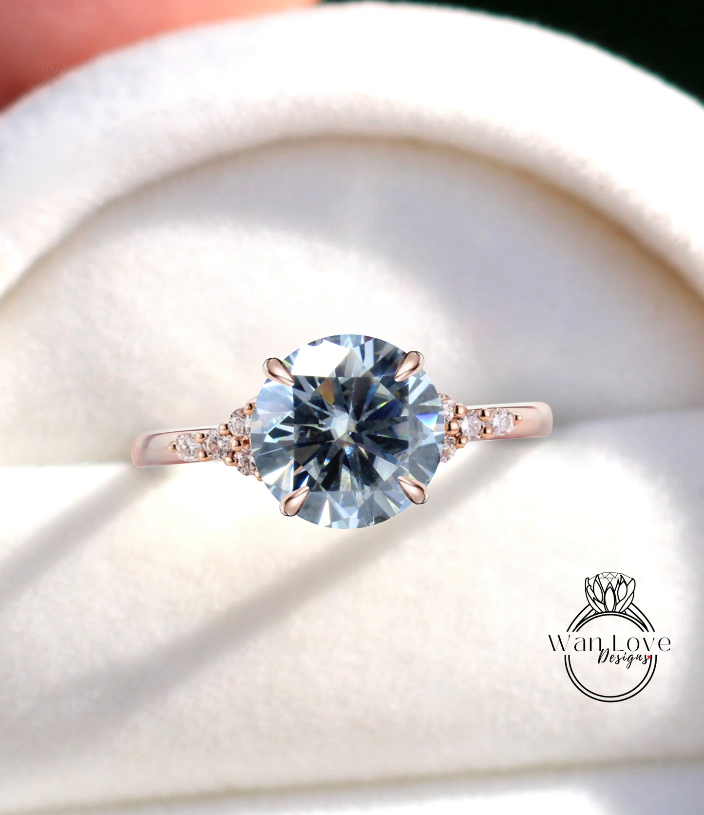 Vintage Grey Moissanite Diamonds Round Cluster ring art deco thin dainty 3 gemstone Engagement Ring Wedding Bridal Ring Anniversary promise ring