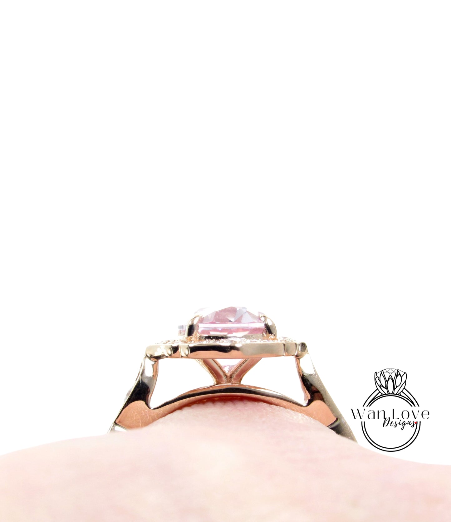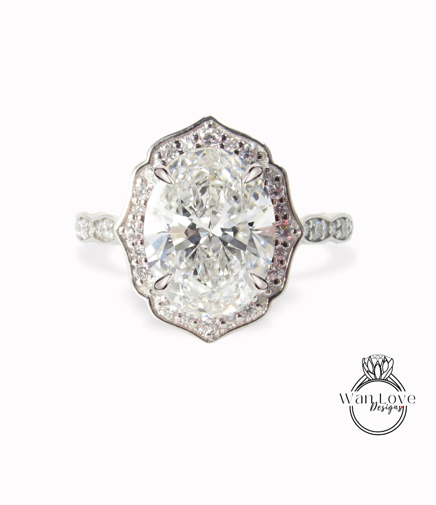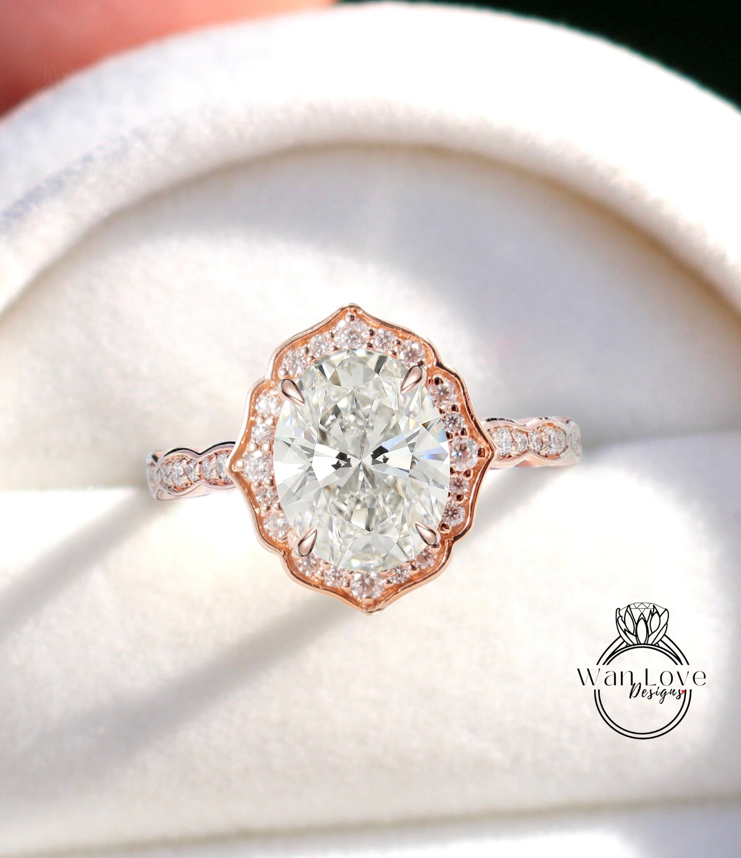 Vintage oval Diamond halo engagement Ring rose Gold oval cut halo ring Antique scalloped IGI Lab diamond Wedding Bridal Anniversary Ring