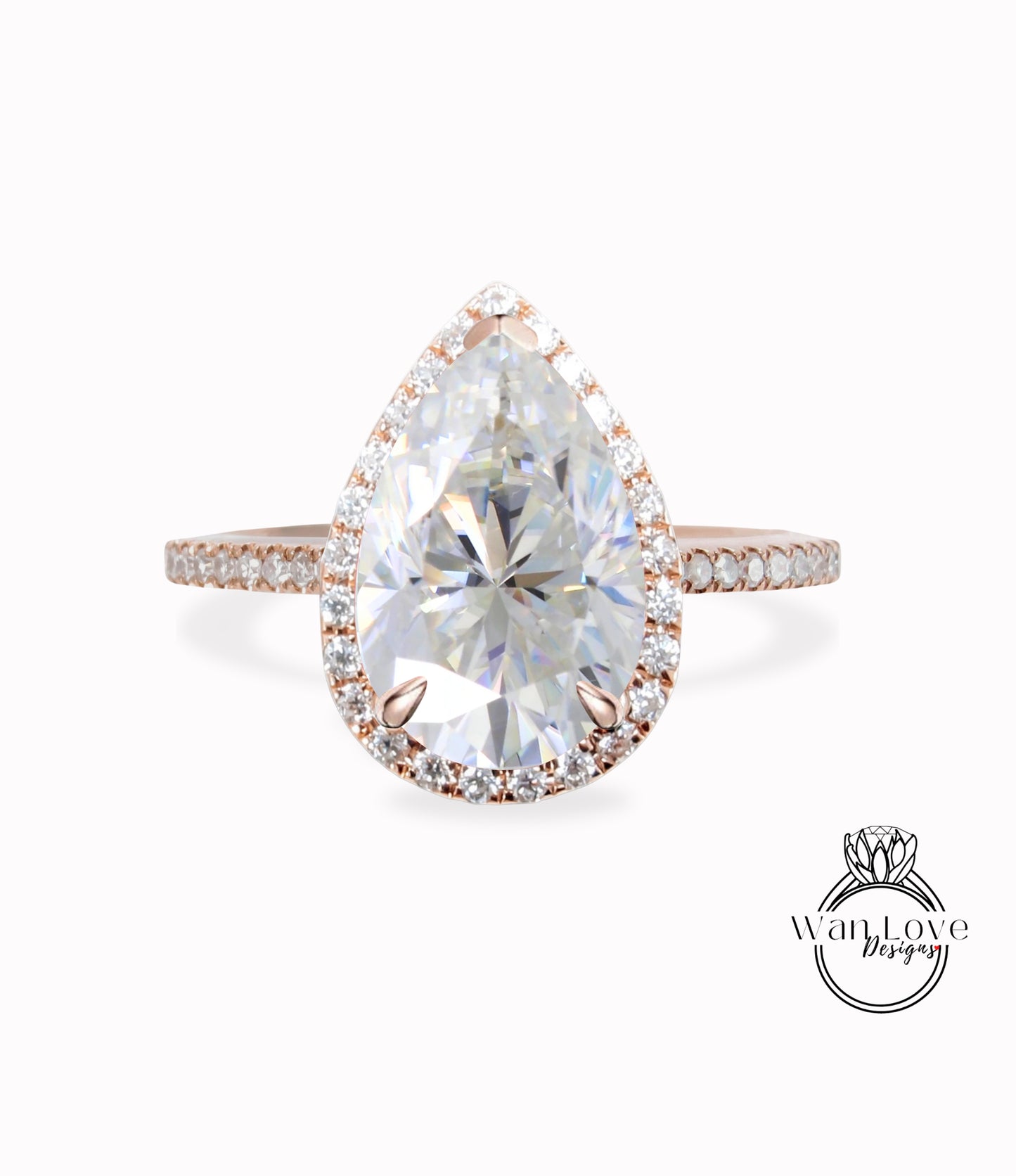 Vintage Pear shaped Moissanite Engagement Ring, Pear Cut 14k White Gold Diamond Halo Ring, Wedding Ring Anniversary Ring Proposal Ring.