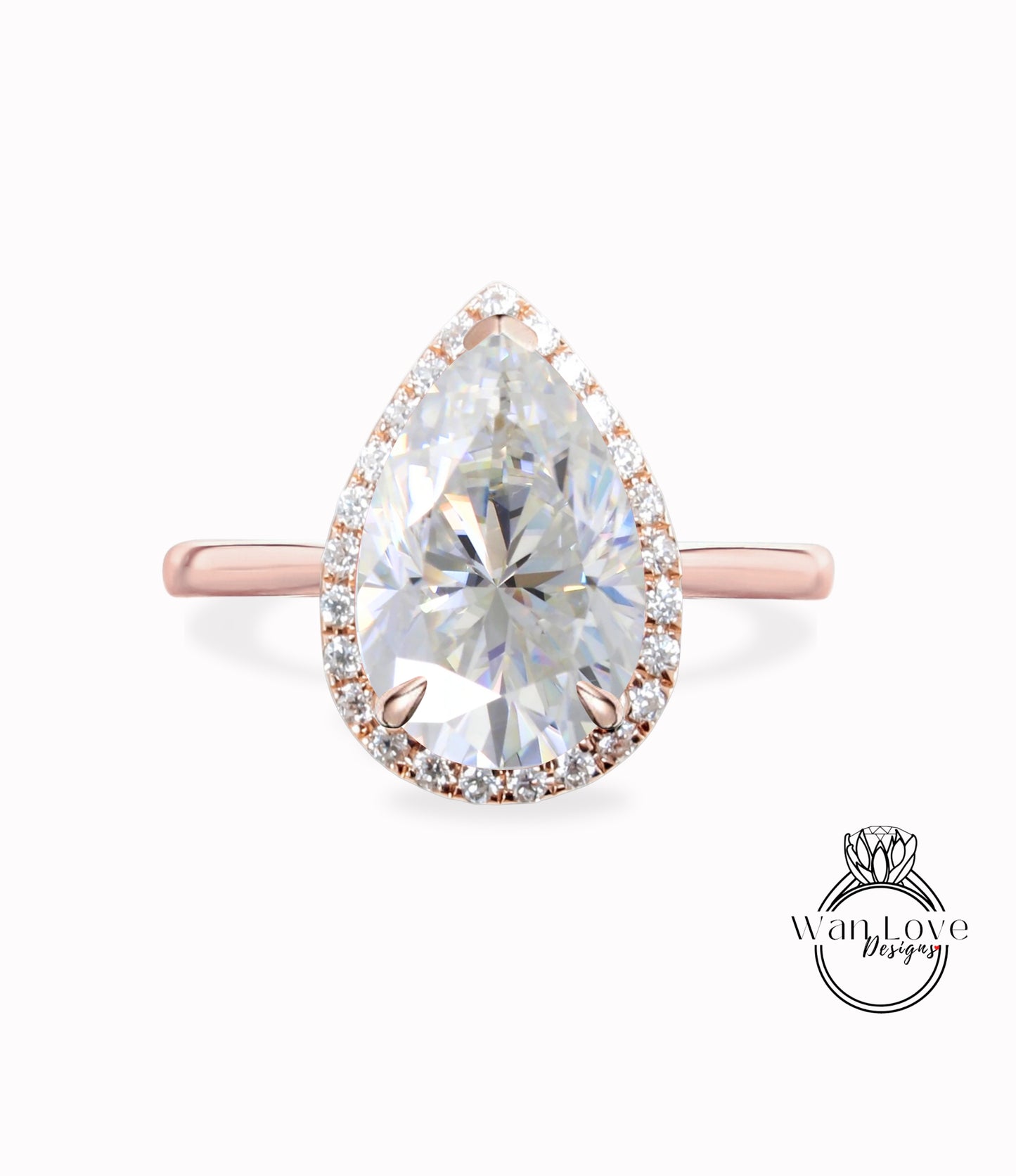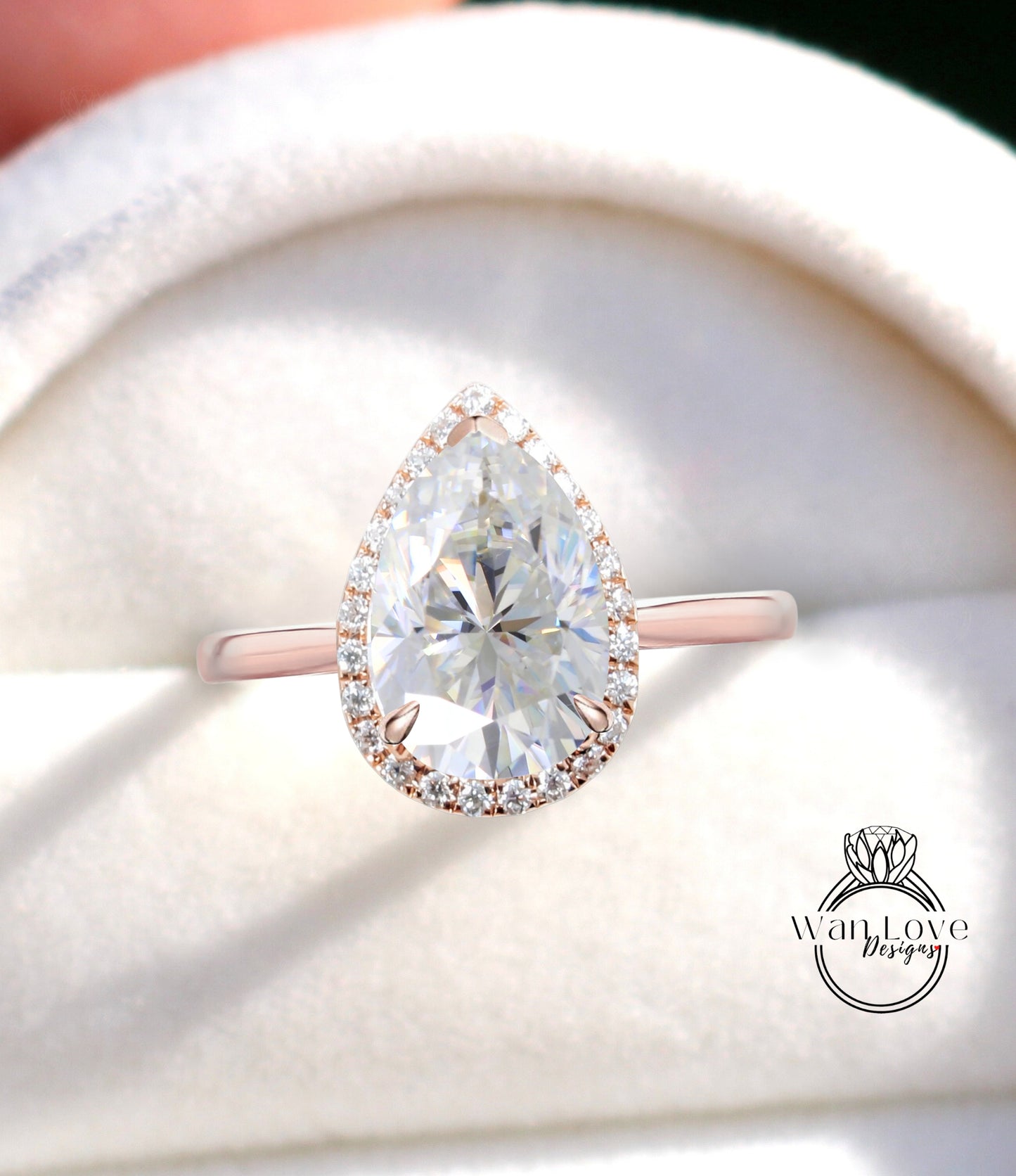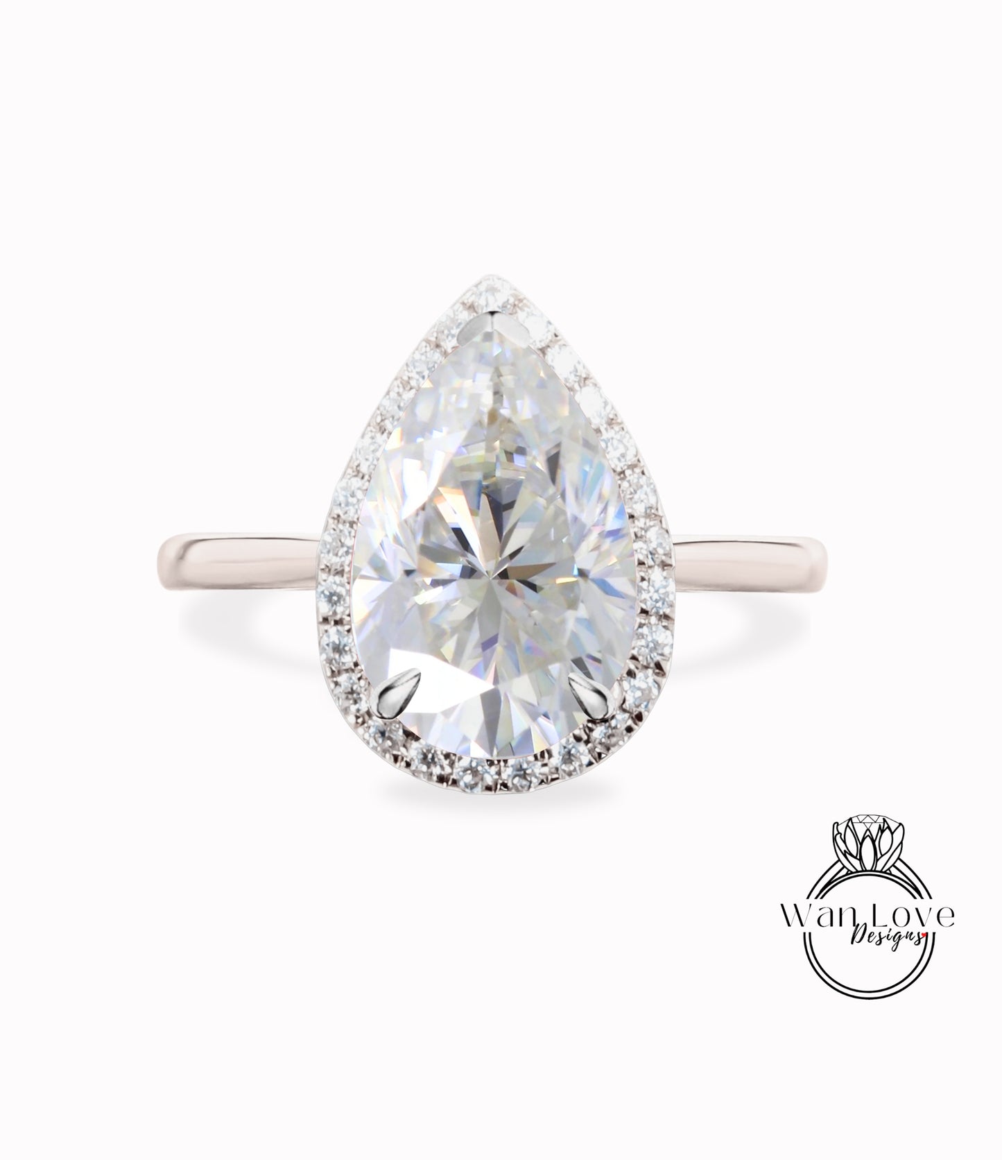 Vintage Pear shaped Moissanite Engagement Ring, Pear Cut 14k White Gold Diamond Halo Ring, Wedding Ring Plain band Anniversary Ring Proposal Ring