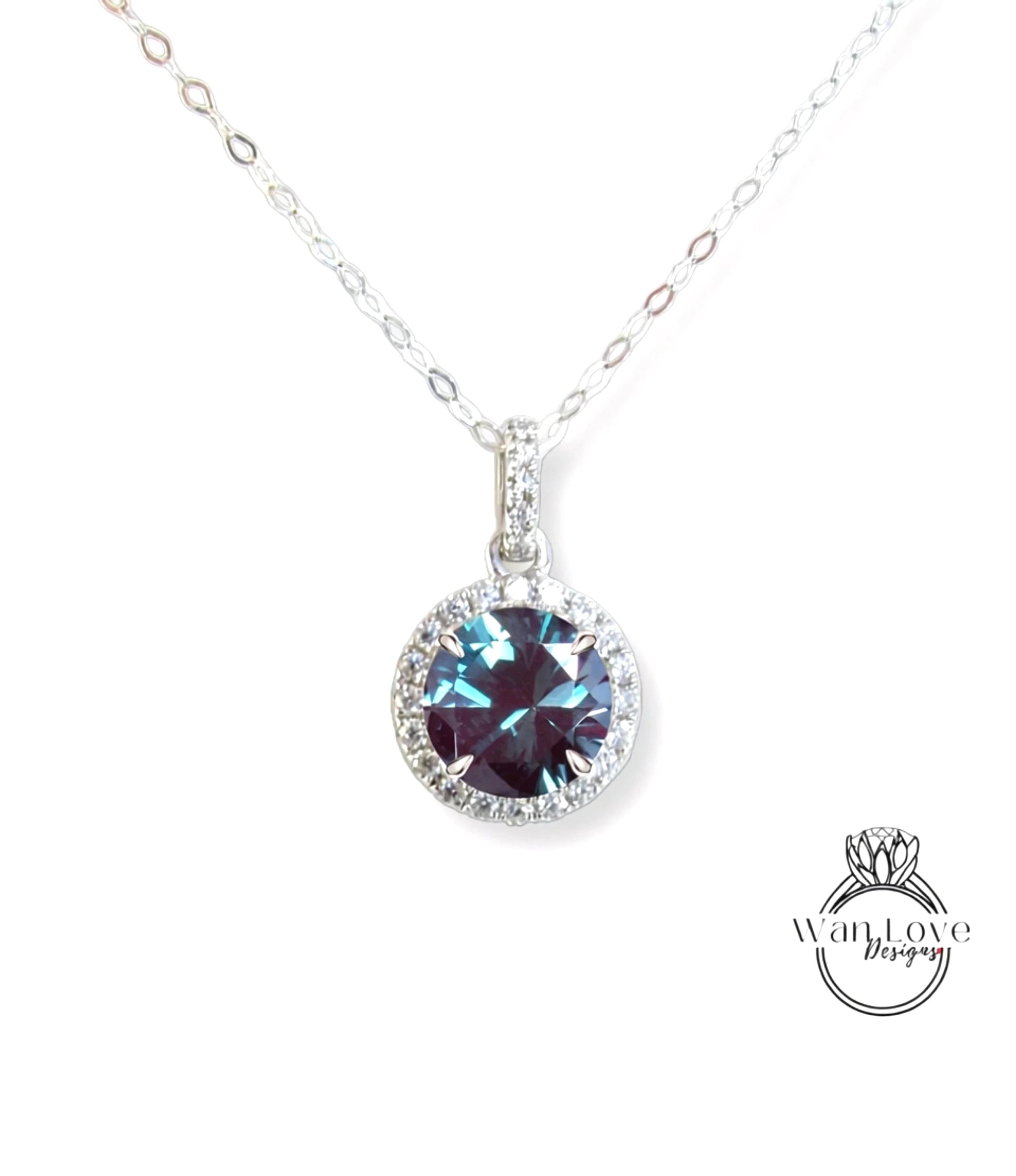 White Sapphire & Diamond Round Cut Halo Pendant | Round Moissanite Halo Pendant | 14KT Rose Gold Pendant | Bridal Set | Bridal Wedding jewelry | Anniversary Gift Collection