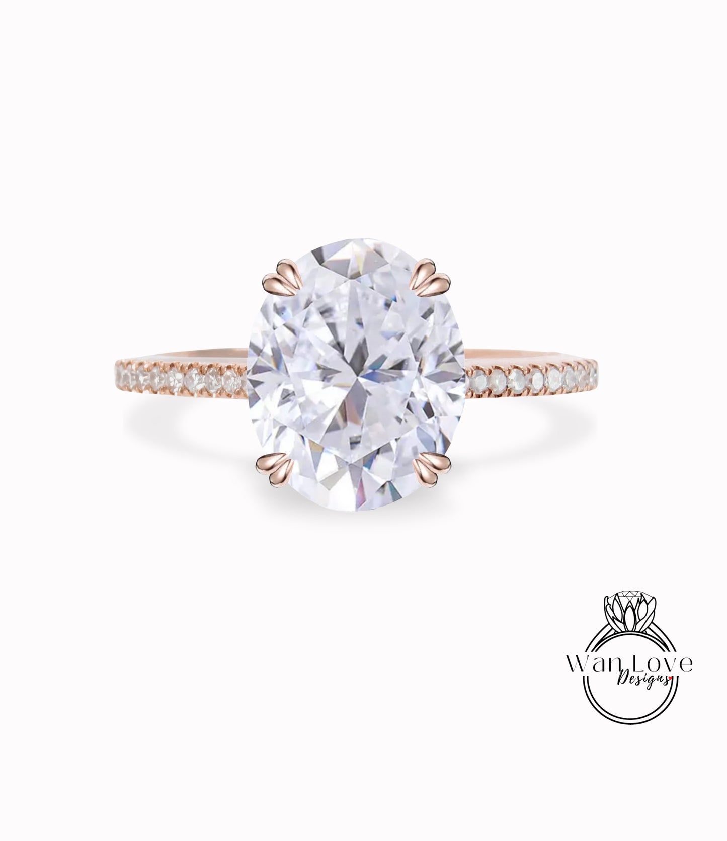Oval cut White Sapphire Color engagement ring rose gold half eternity diamond band art deco bridal wedding anniversary ring promise ring
