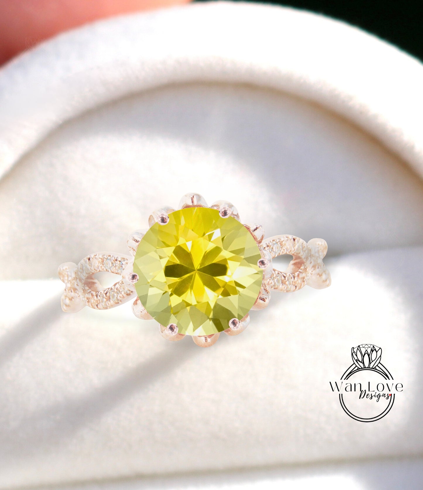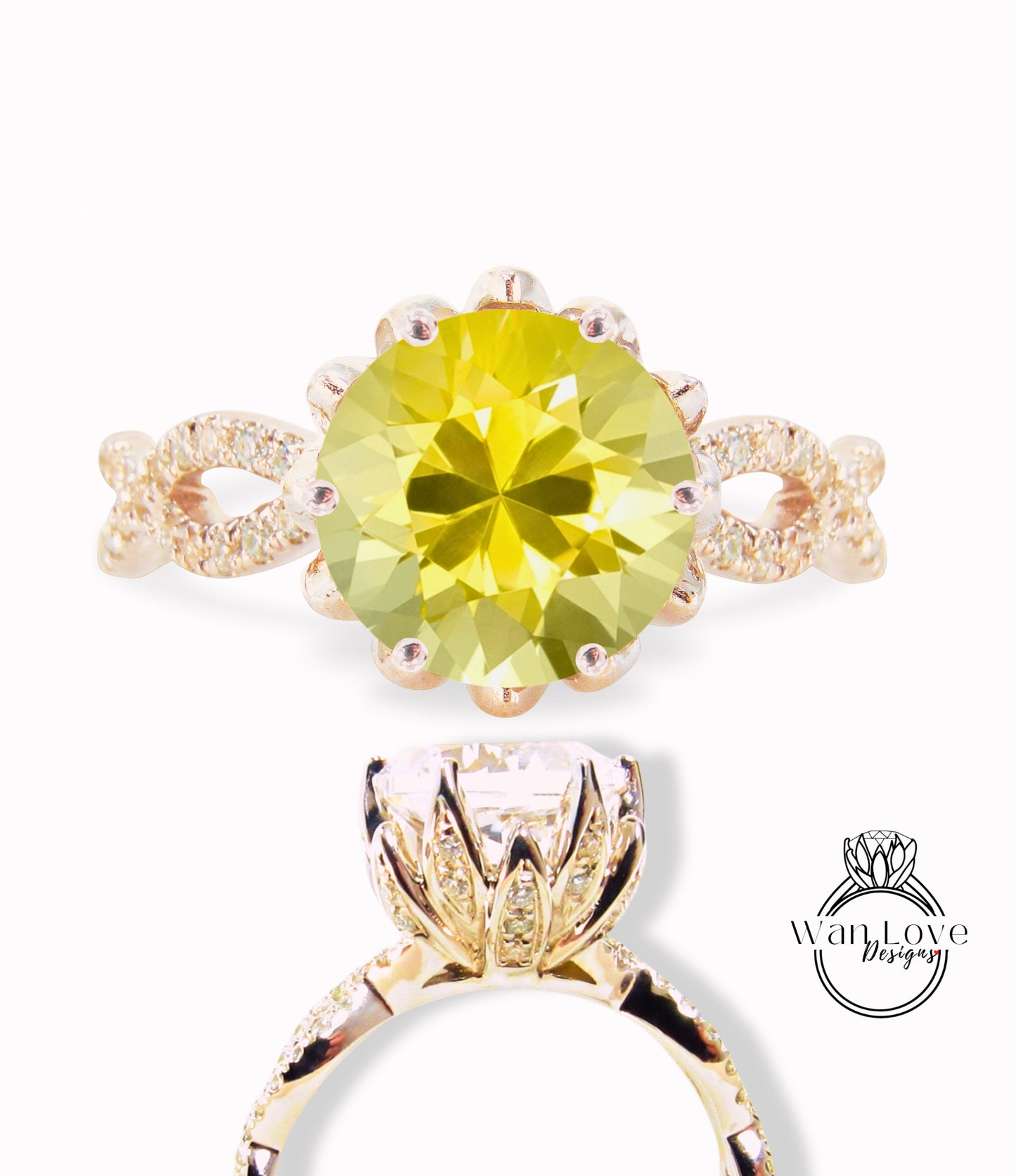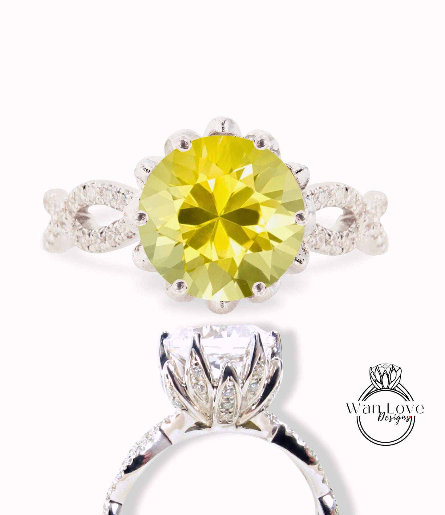 Yellow Sapphire engagement ring vintage Lotus flower two row ring Diamond twisted ring unique floral Bridal Promise Anniversary ring